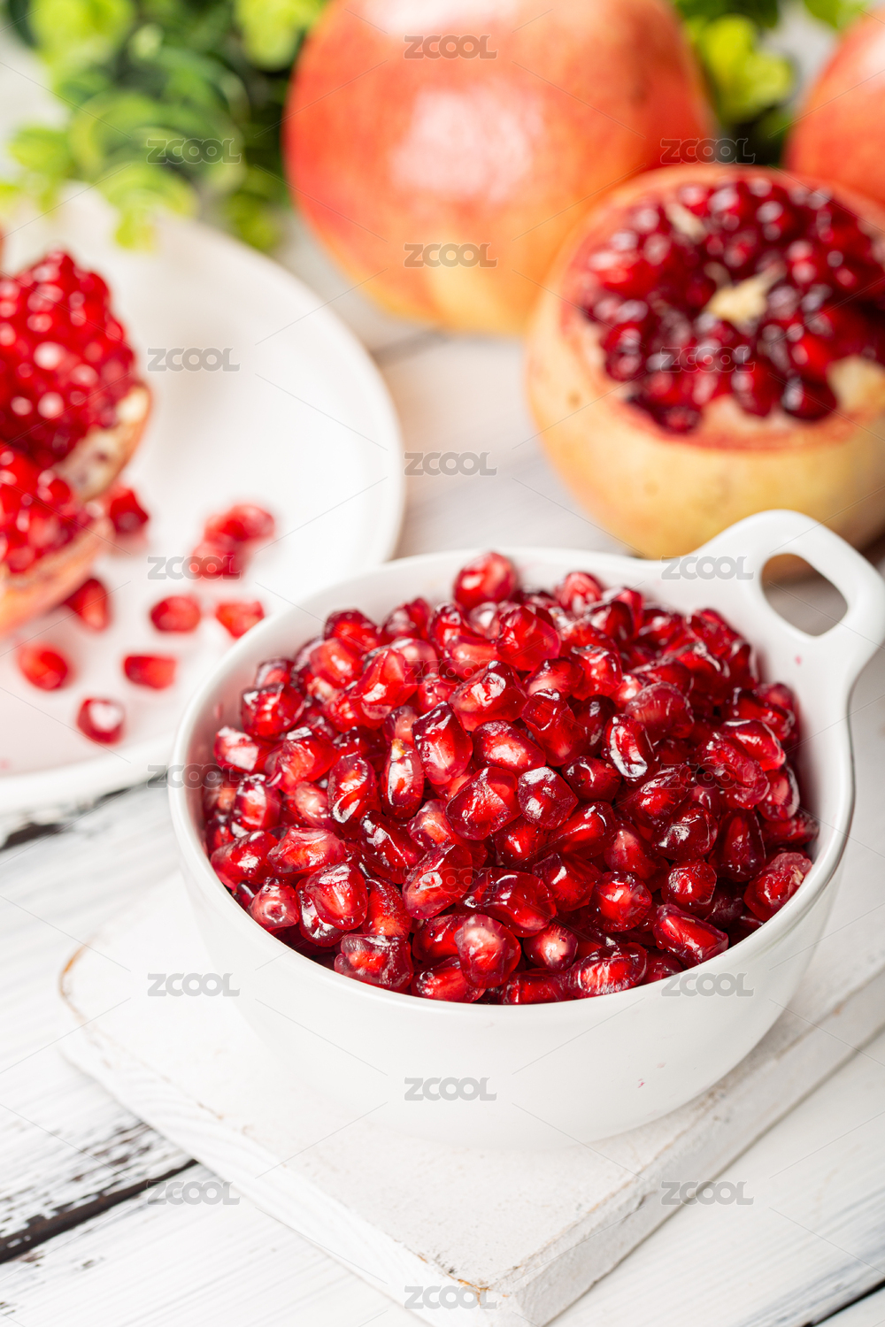 木底上的一碟粉籽石榴