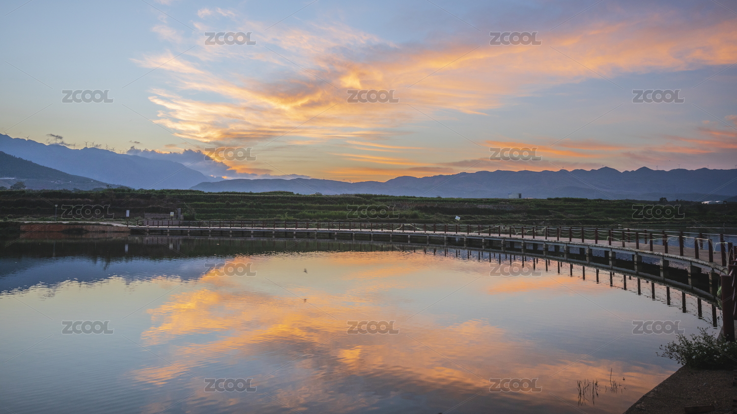 户外,无人,天空,晚霞,日落,乡村,美丽,田园,蜿蜒,小桥