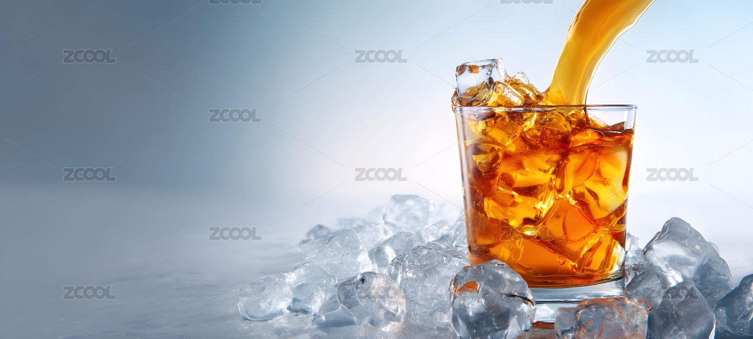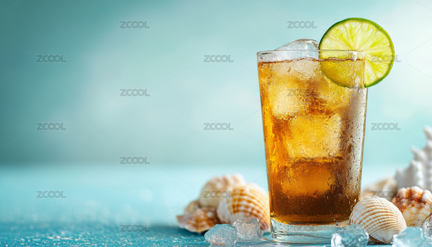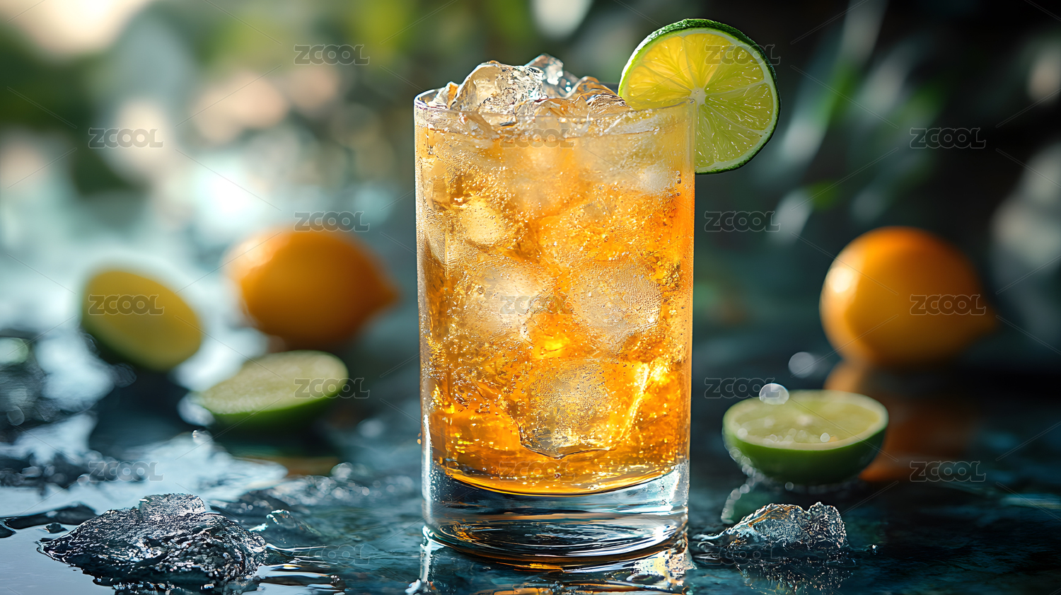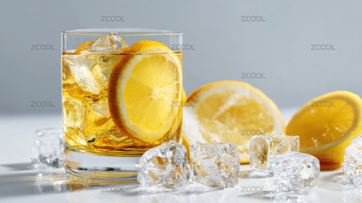 一杯有冰块的甜柠檬茶在玻璃杯中。