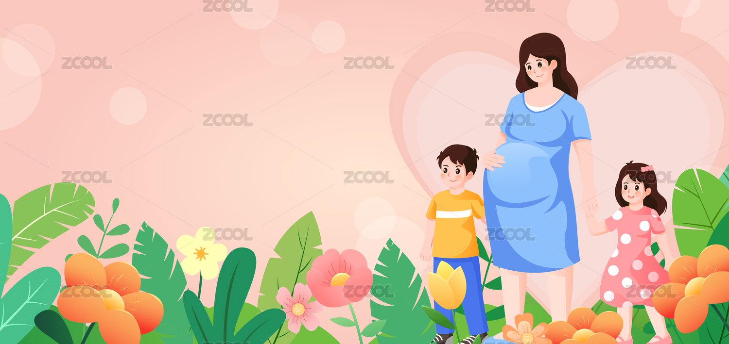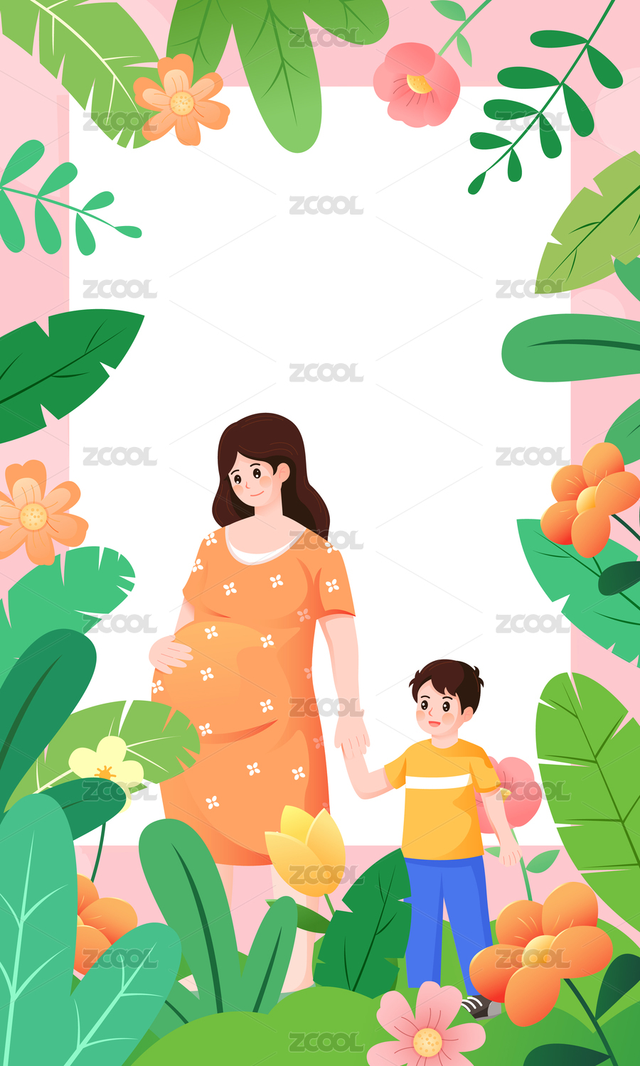 母亲节快乐孕妇妈妈儿童人物矢量插画海报