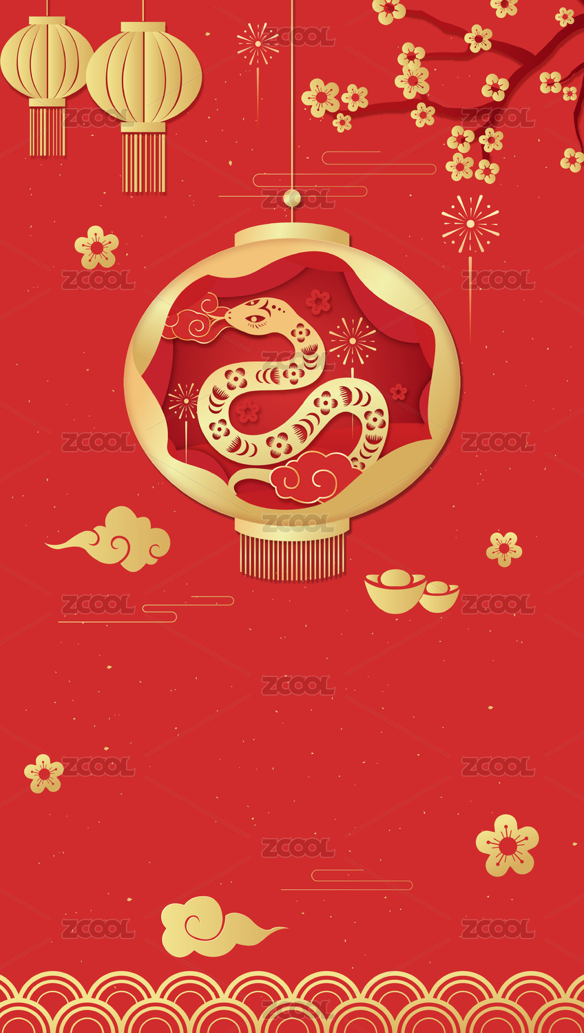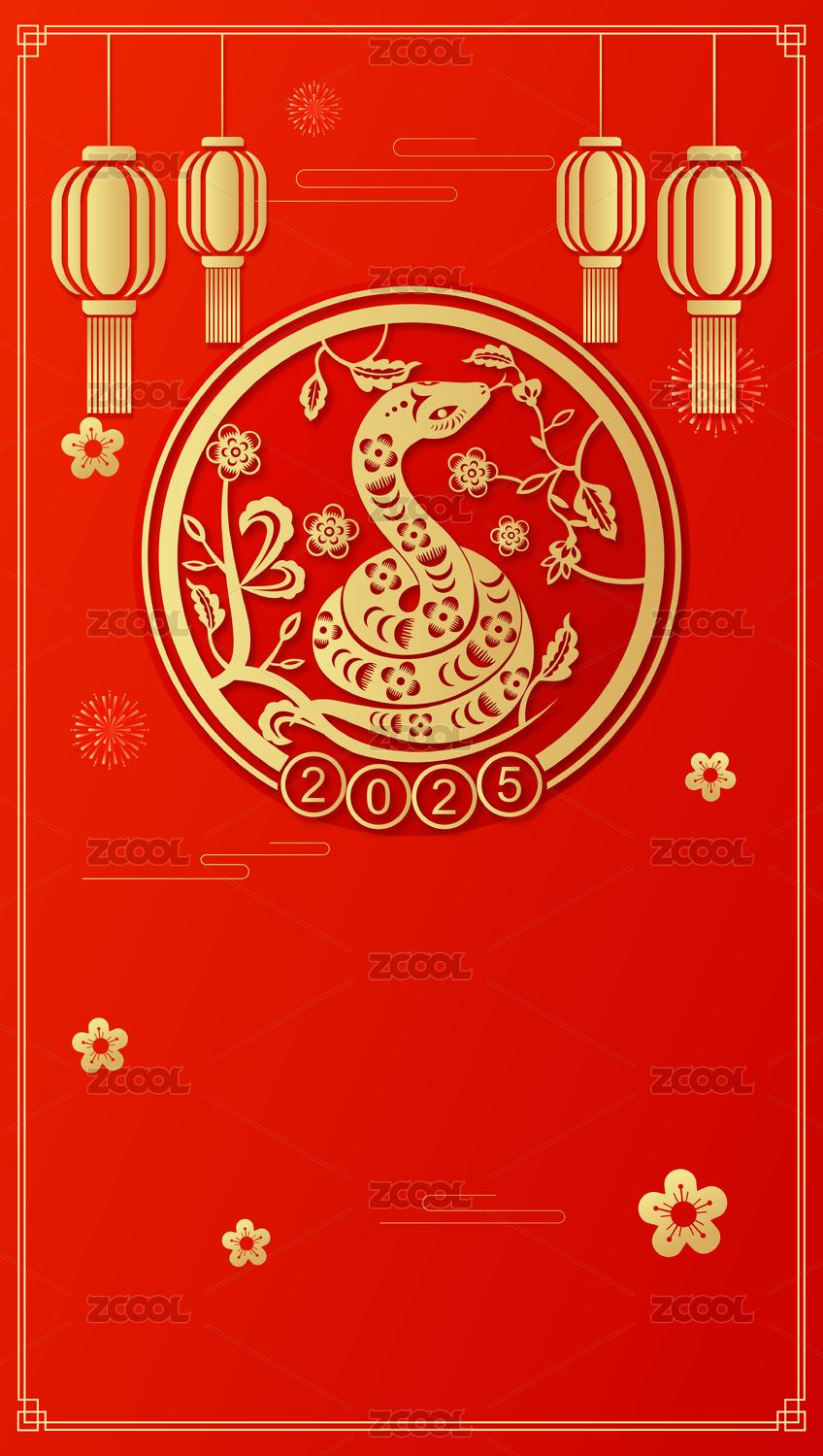 2025蛇年春节十二生肖巳蛇剪纸风格插画