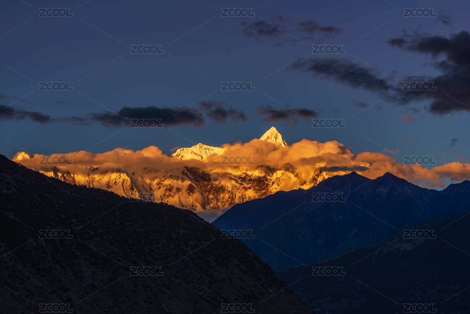 中国西藏林芝南迦巴瓦峰日照金山风光