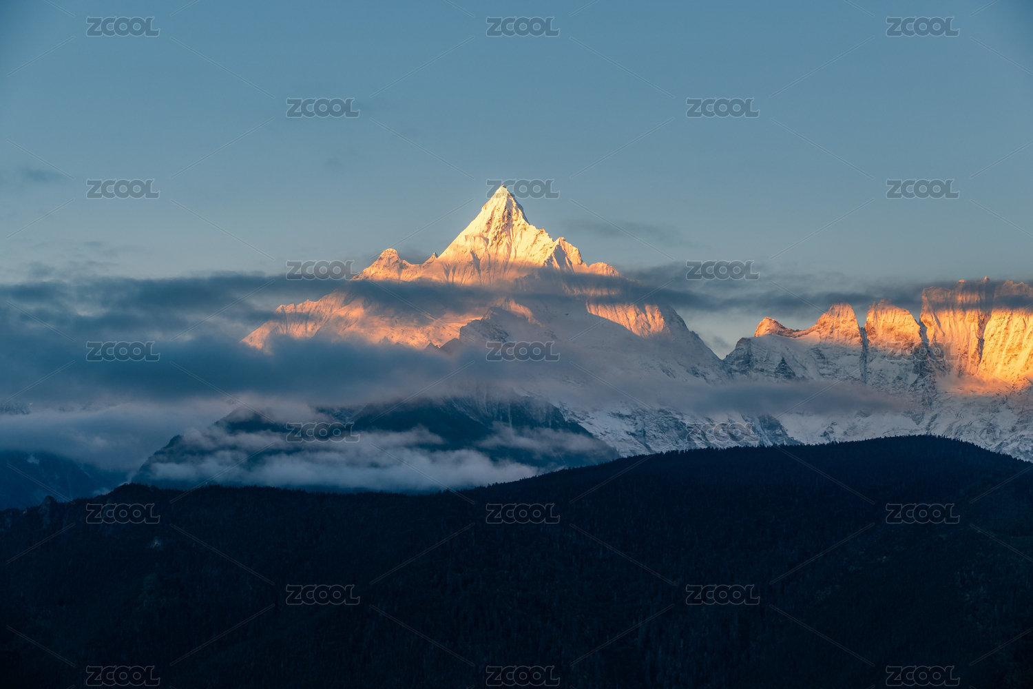 中国云南省迪庆州德钦县梅里雪山的日照金山