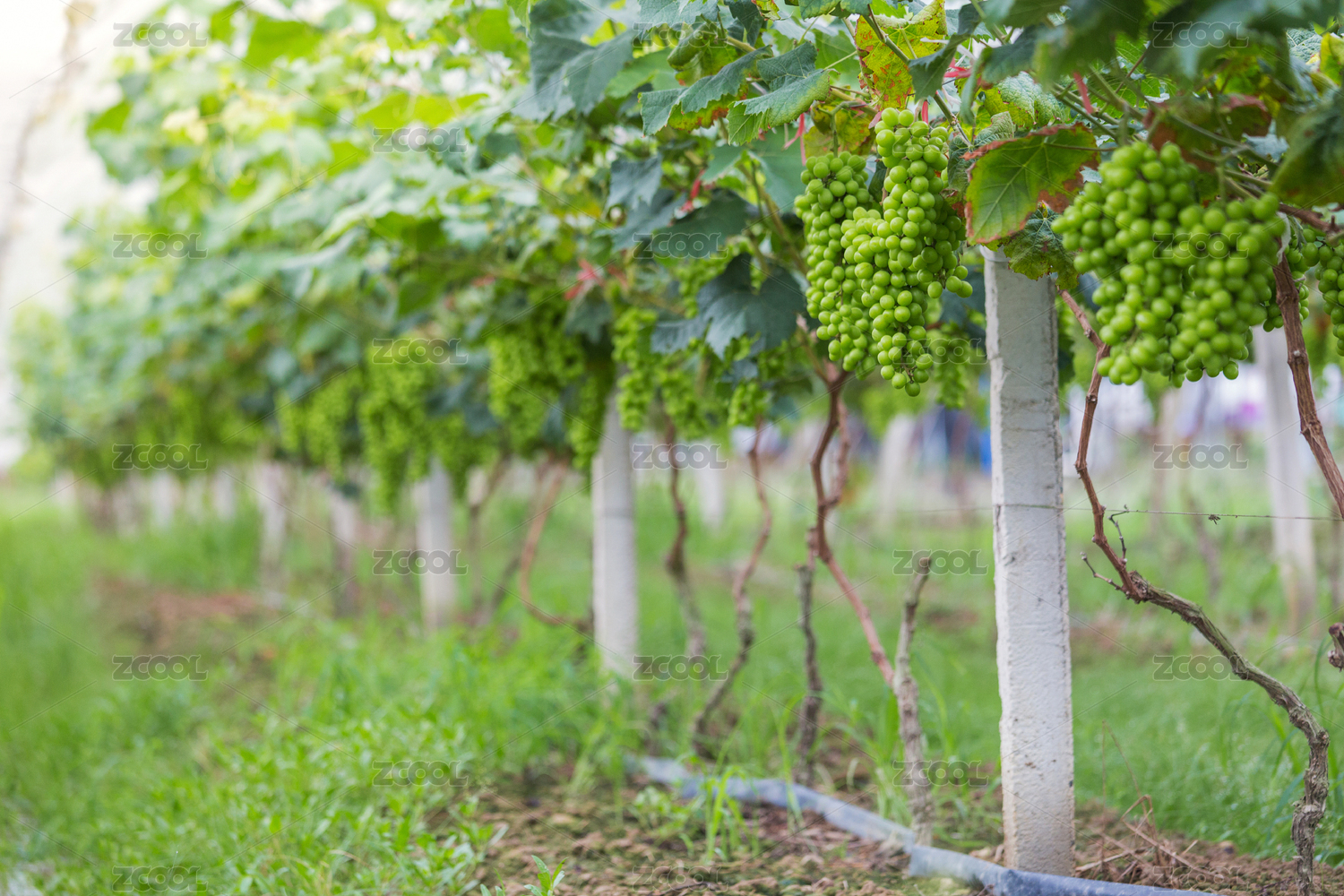 葡萄园里挂着一串串绿葡萄