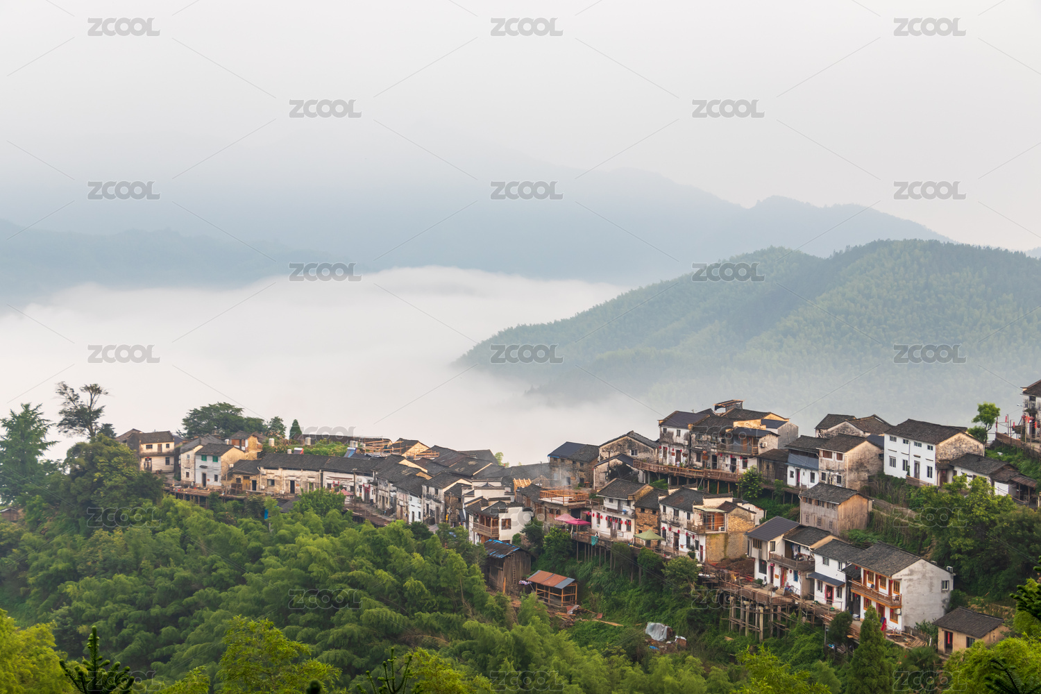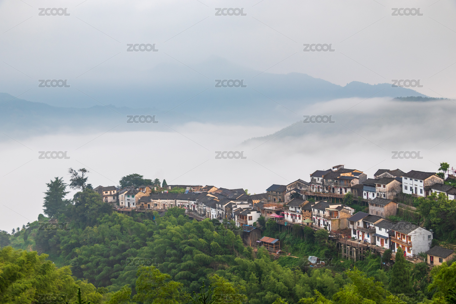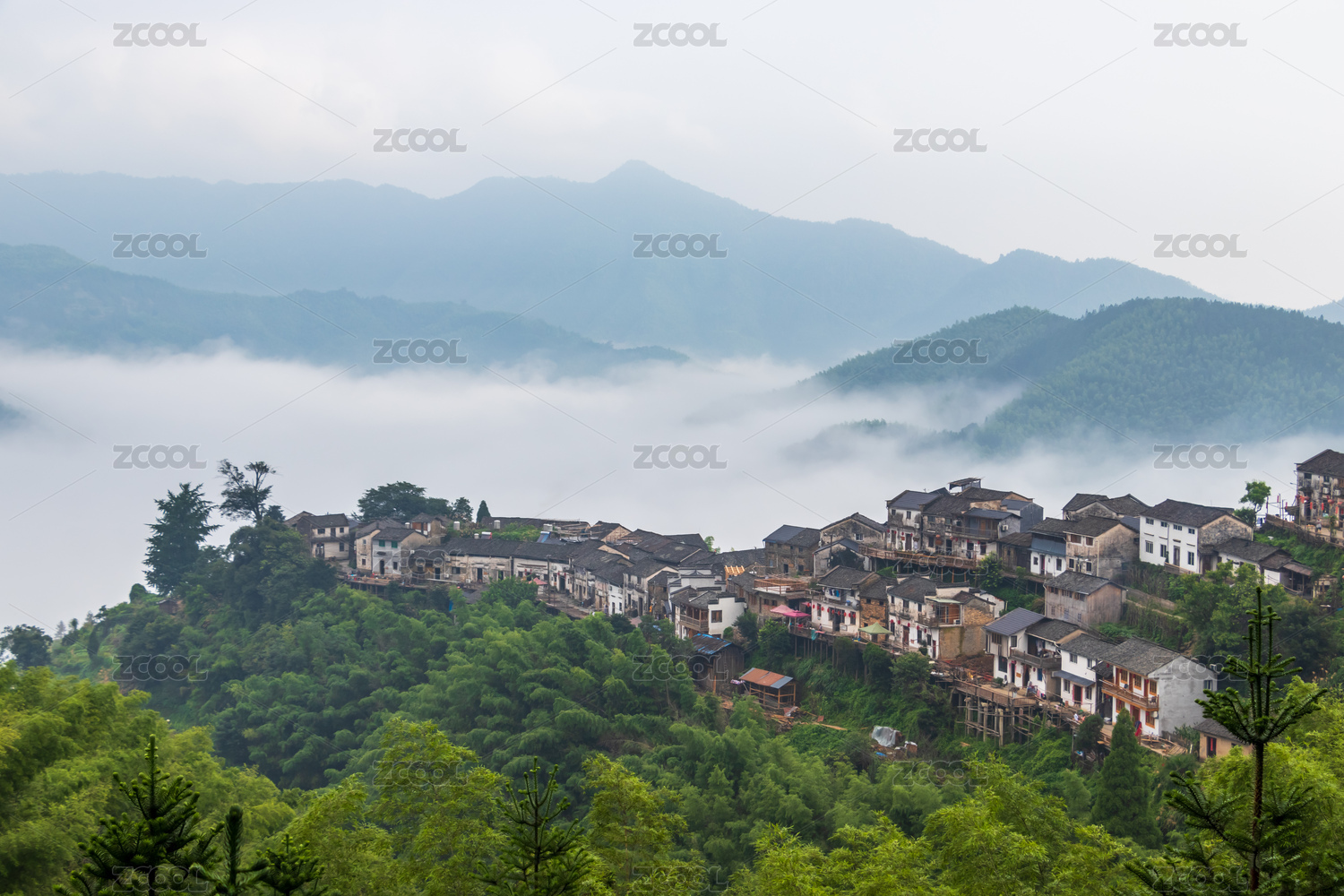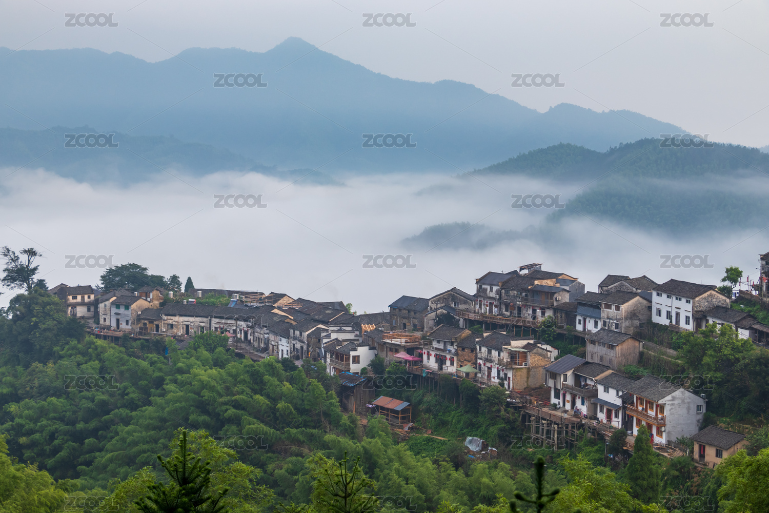 中国,安徽,徽州,休宁,景点,木梨硔,夏天,天空,徽派建筑,房子