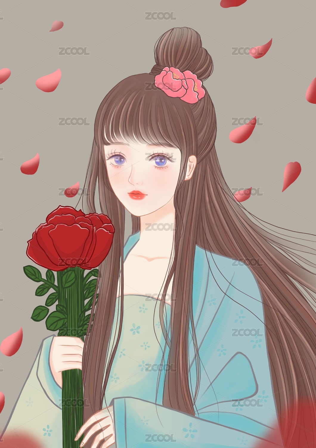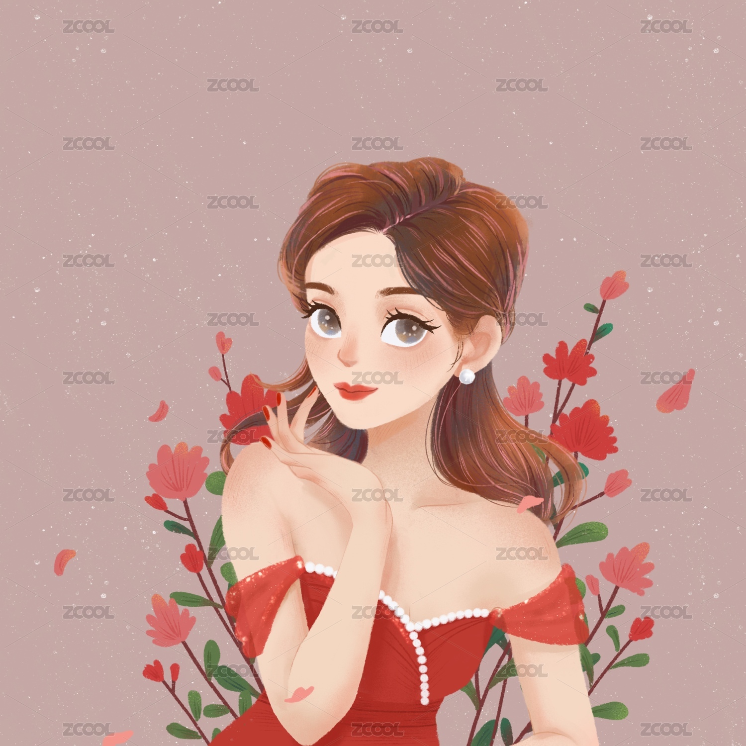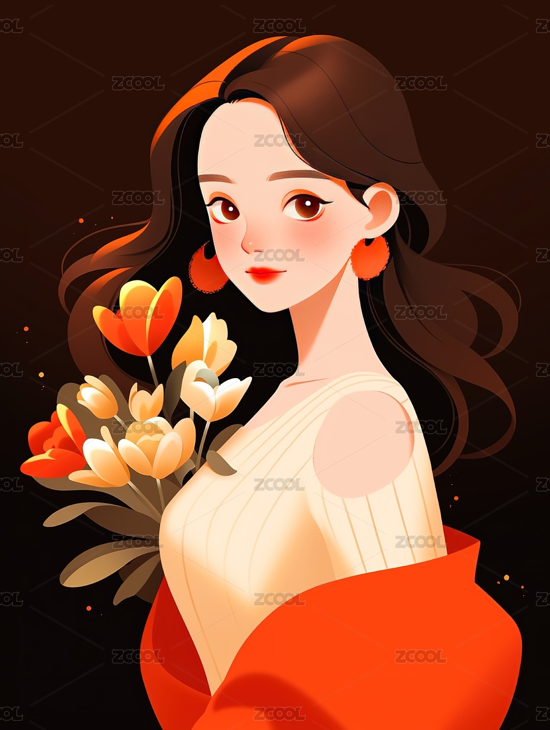 鲜花少女插画