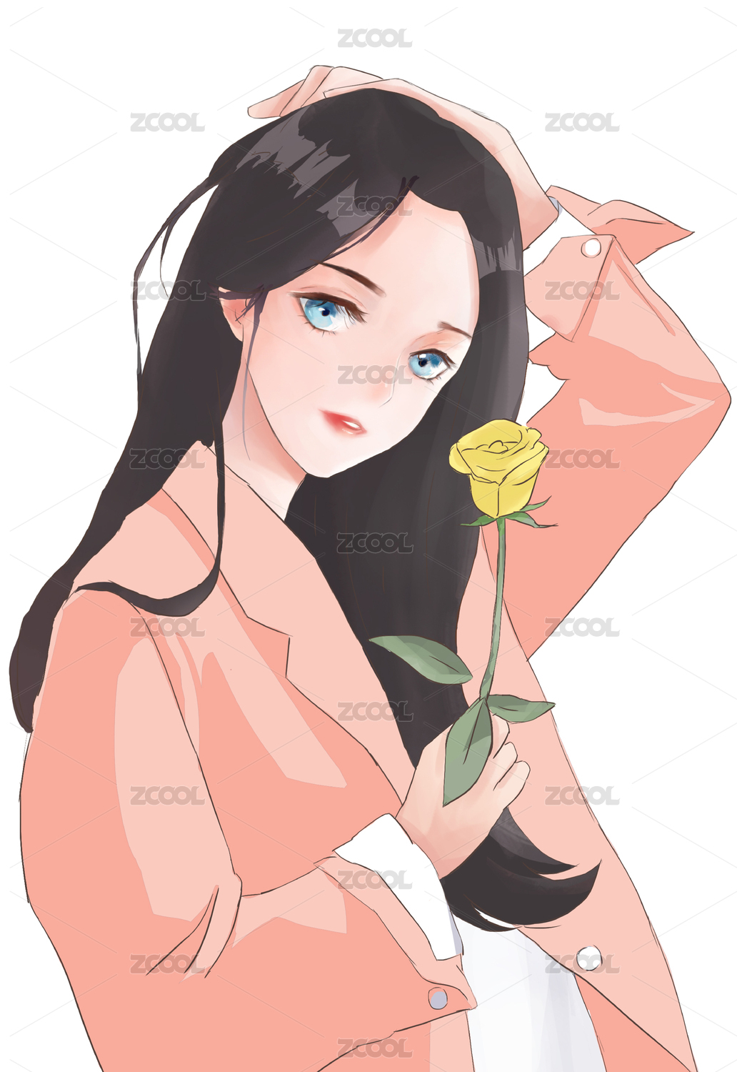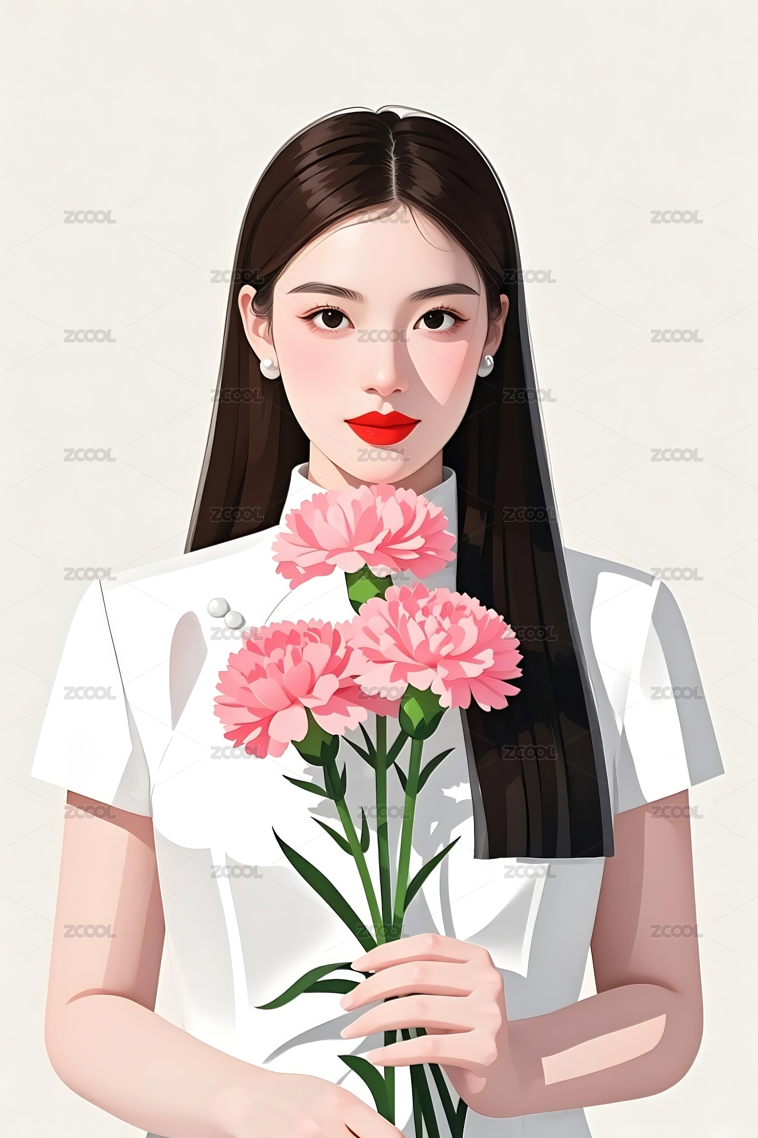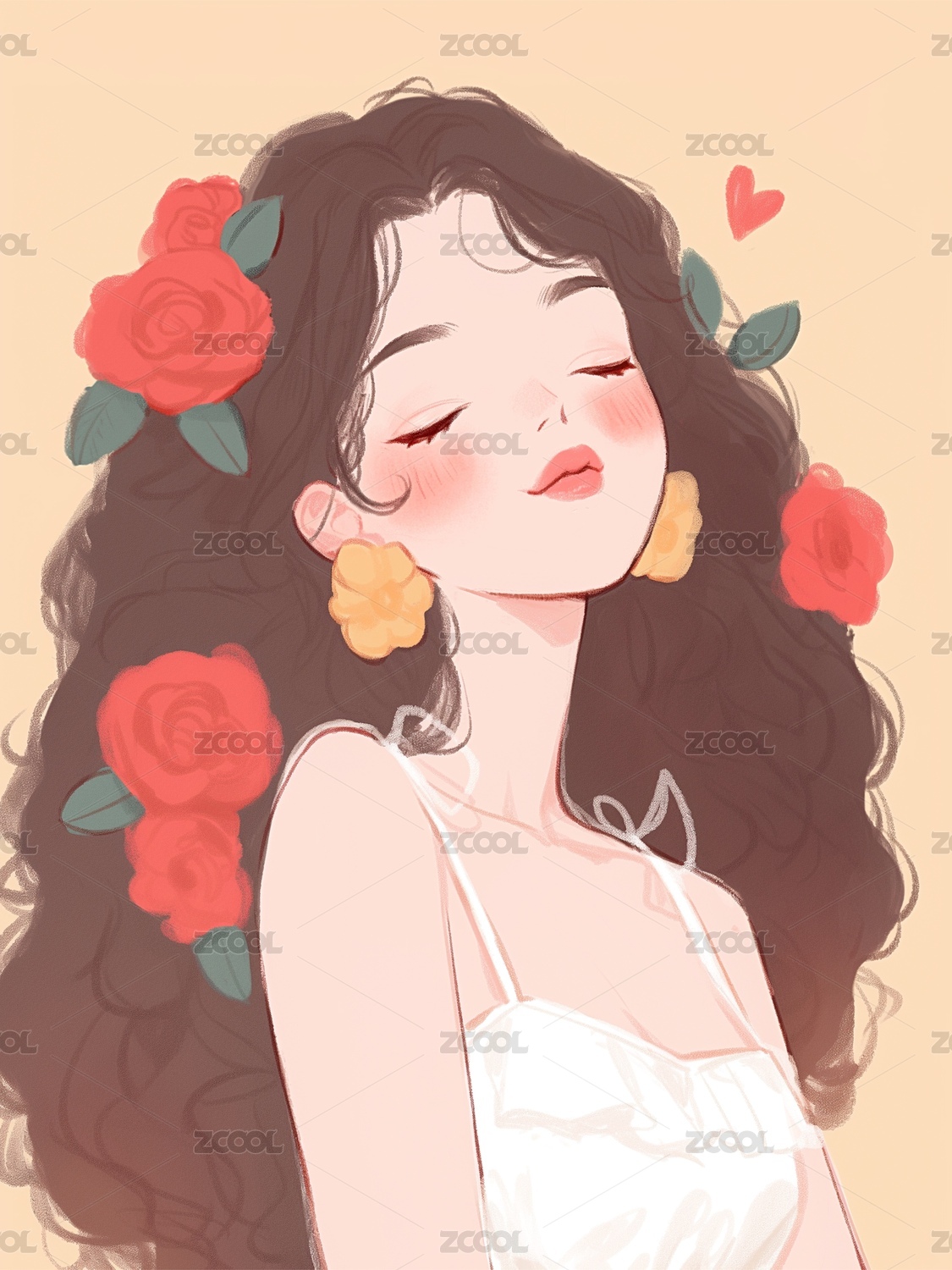 鲜花少女插画