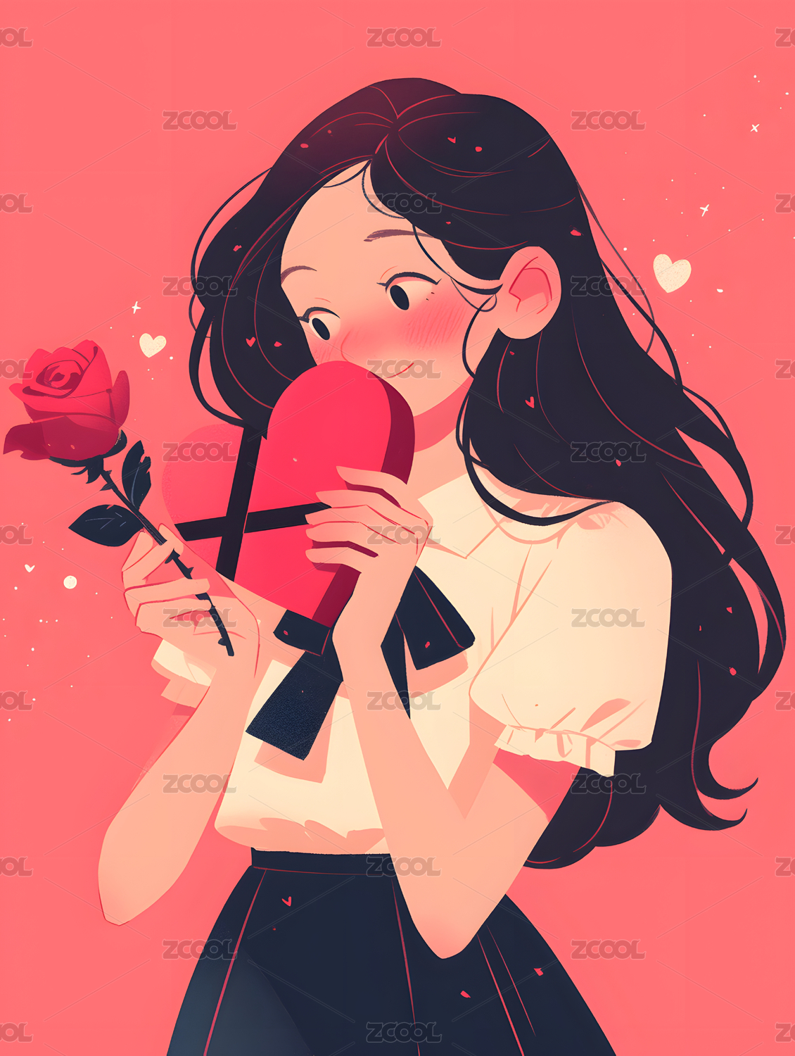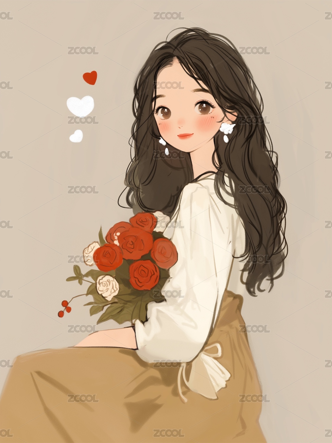 手拿玫瑰的女孩