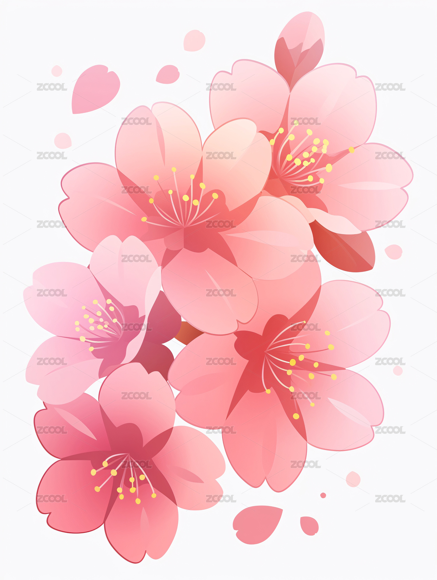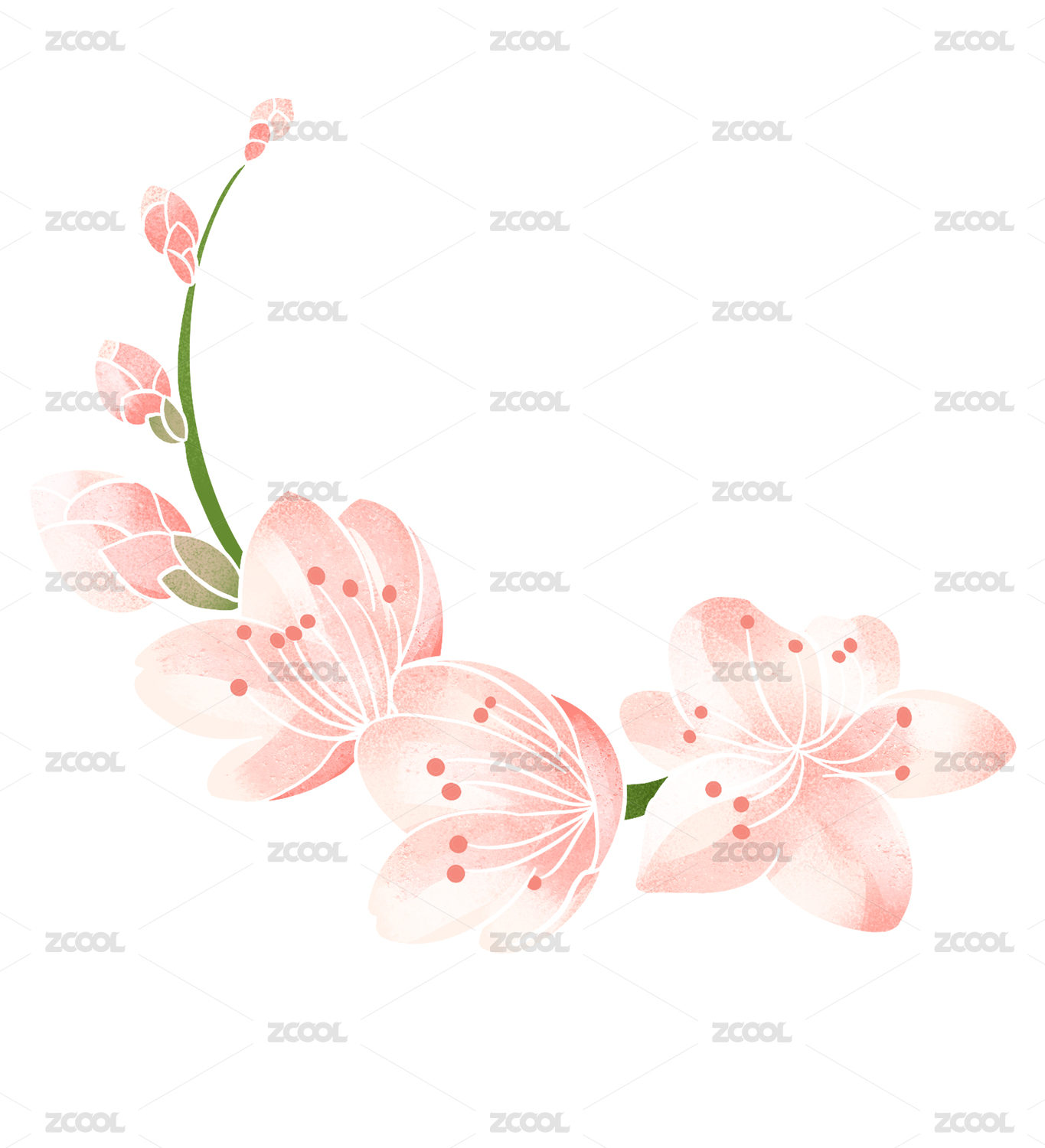 春天 朵朵粉色桃花 唯美卡通春季装饰元素