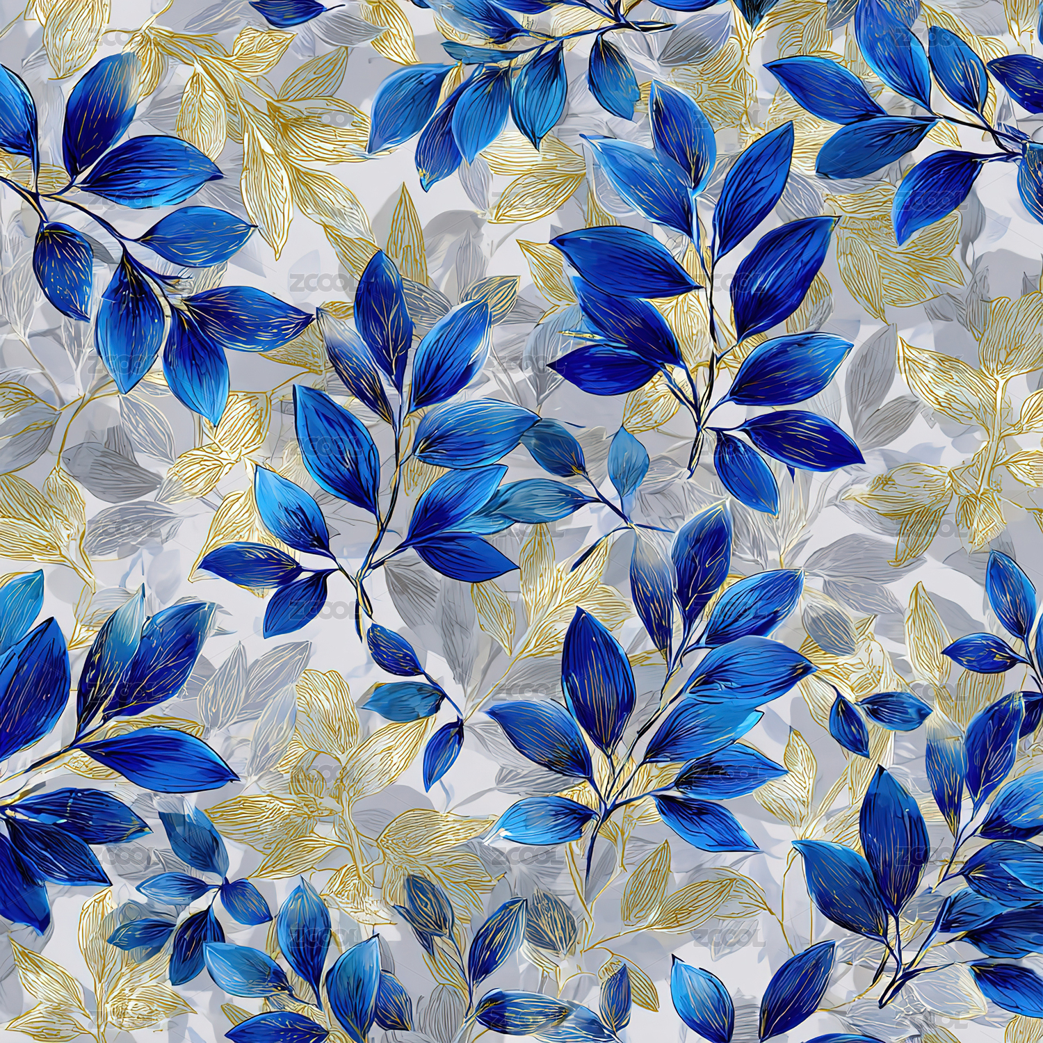 蓝色,金色,花卉,花,枝叶,唯美风,优雅,精美,复古,清新