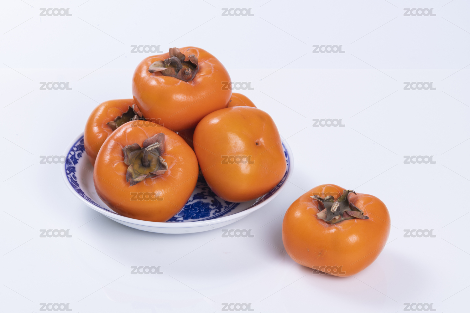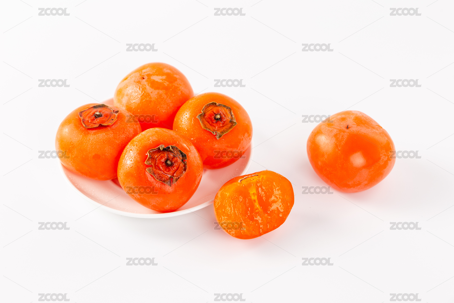柿子,甜柿,火晶柿子,脆柿子,成熟,糖心柿子,脆柿,白色背景,白底,软柿子
