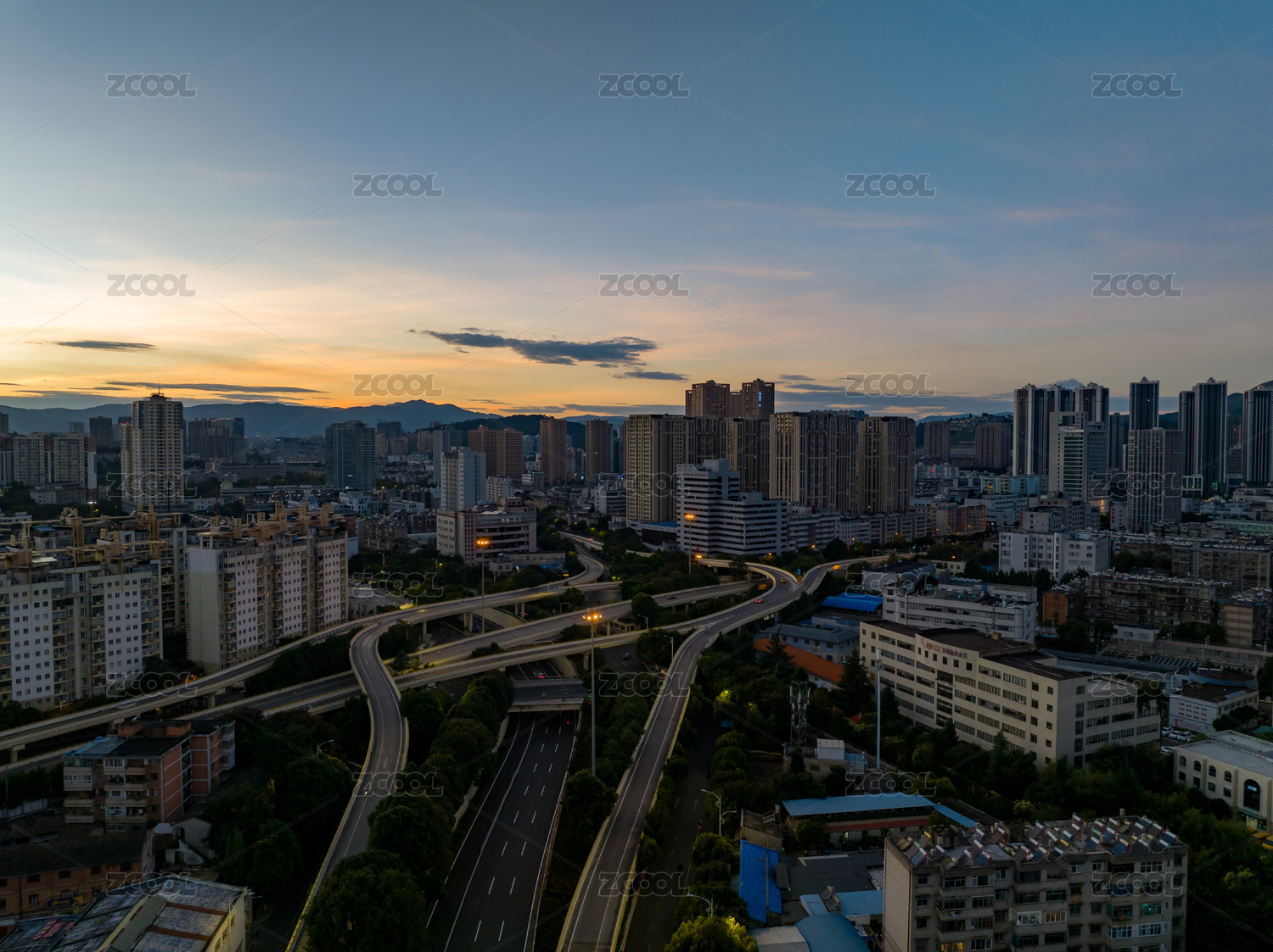广西南宁城市天际线,日出时分青竹立交与邕州