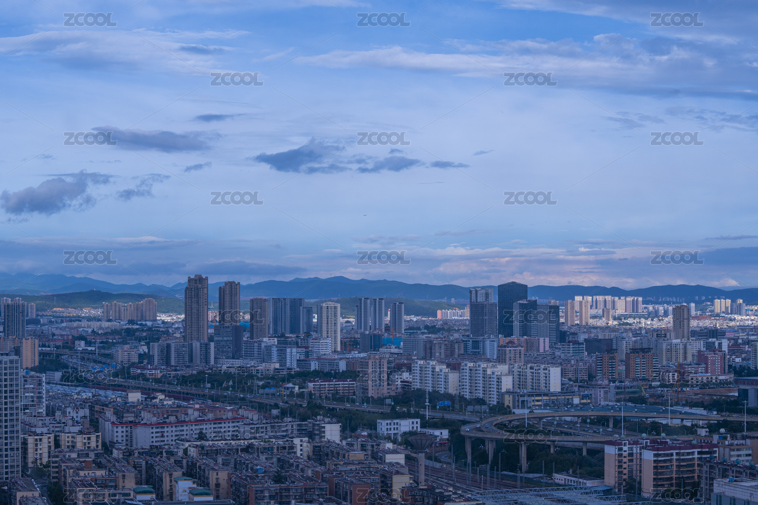 傍晚的中国深圳市郊区住宅建筑及高架桥风光