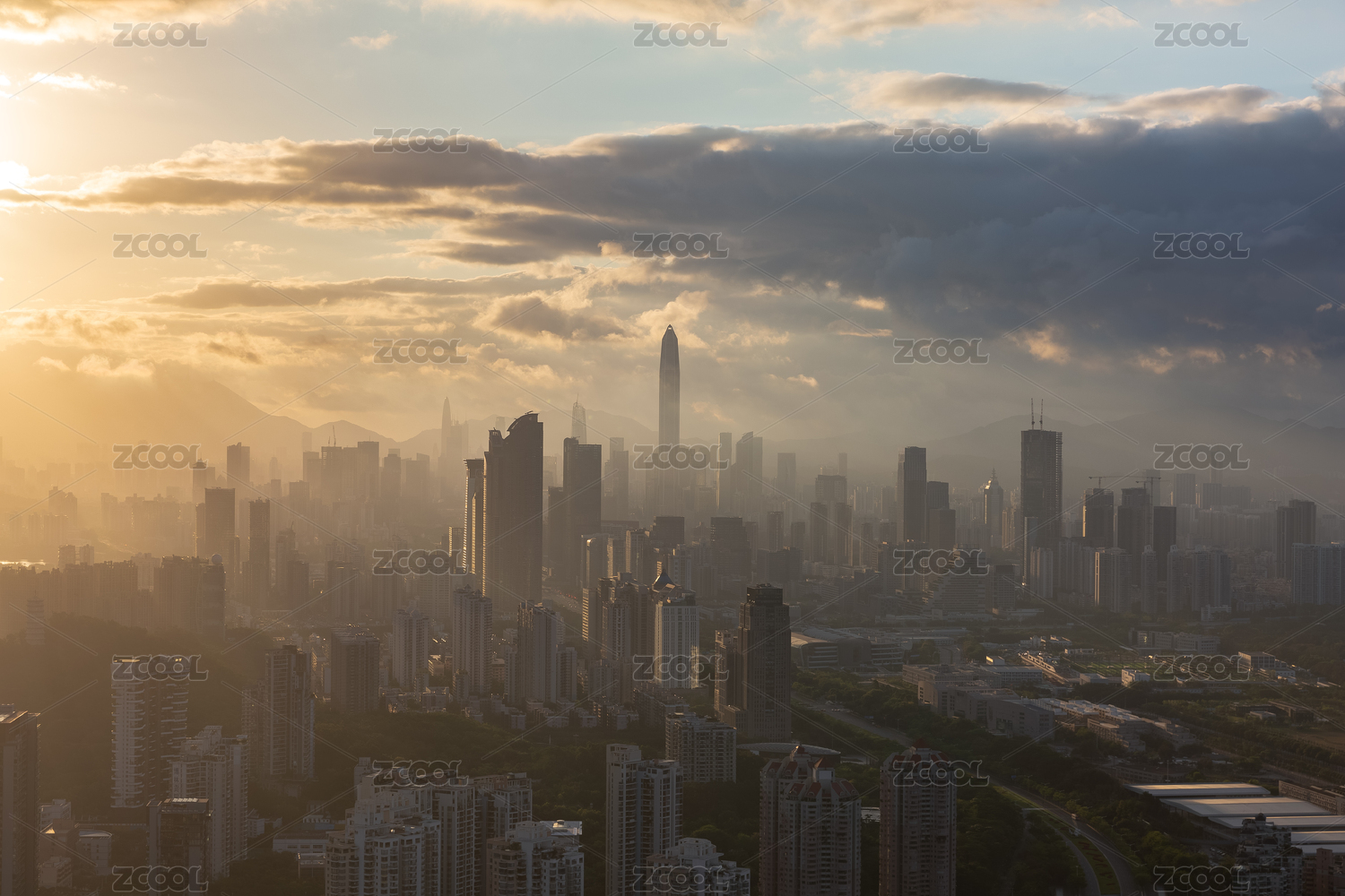深圳宝安前海自贸区建筑群日落黄昏远景