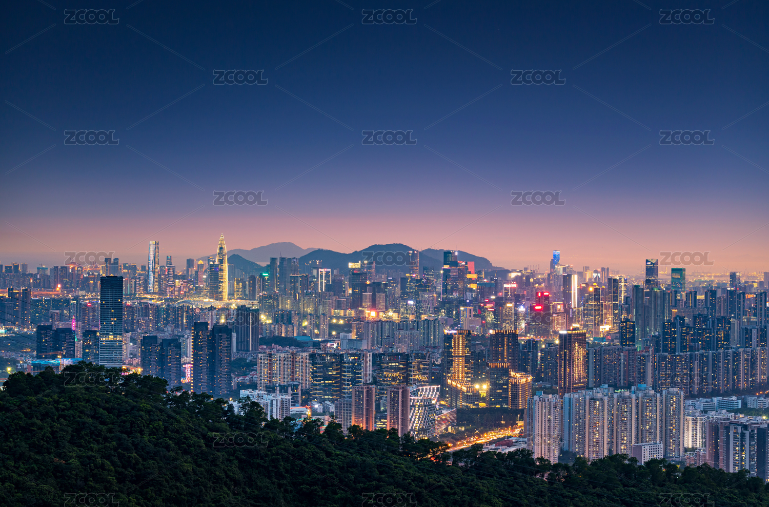 中国深圳塘朗山公园鸟瞰城市夜景建筑