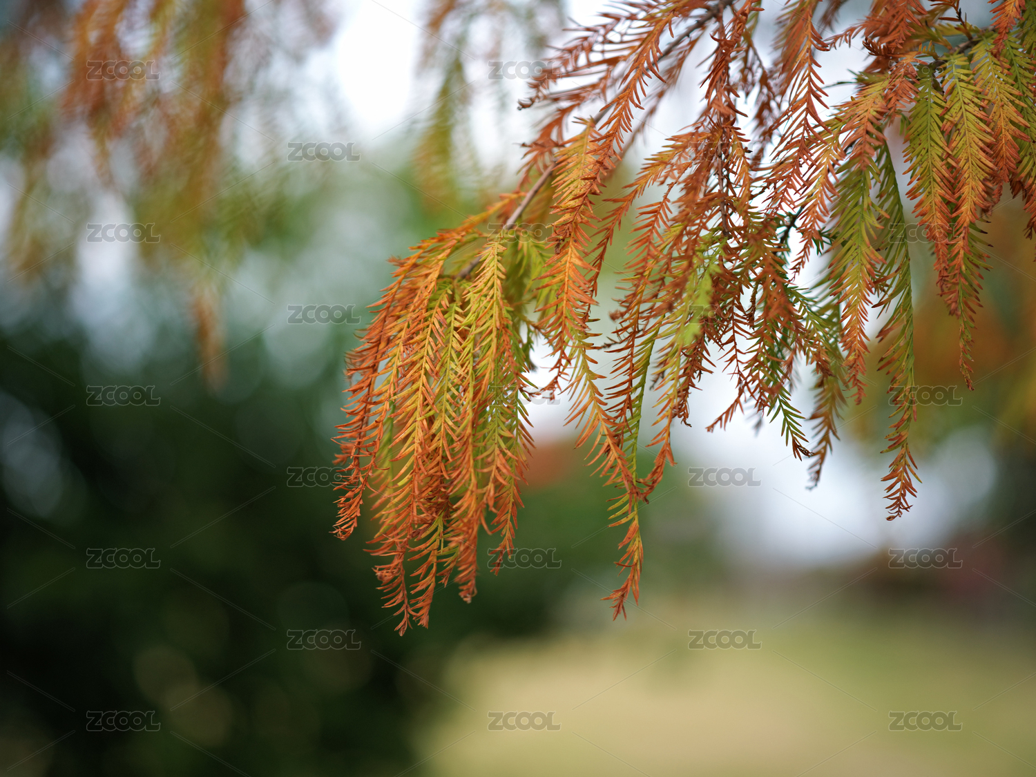 中国安徽宣城宁国方塘红杉林落羽杉秋叶特写