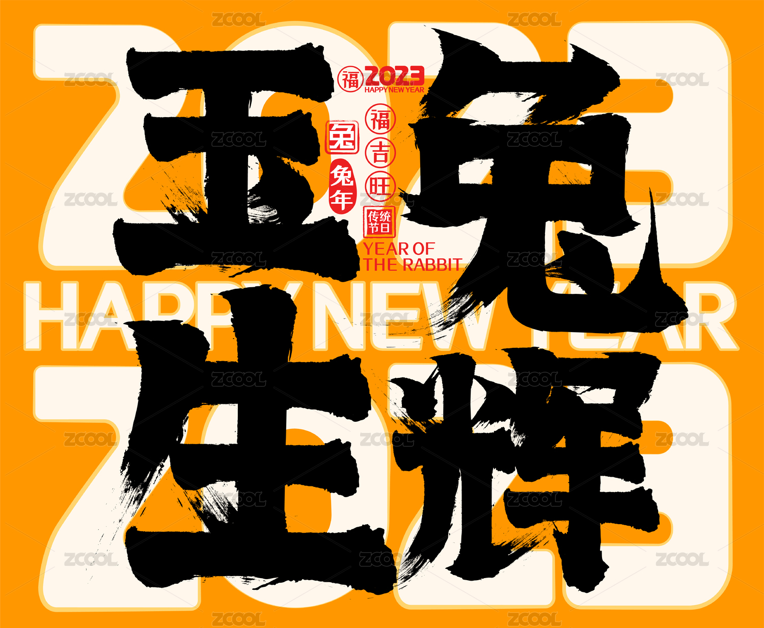 玉兔生辉2023兔年春节新年喜庆毛笔字