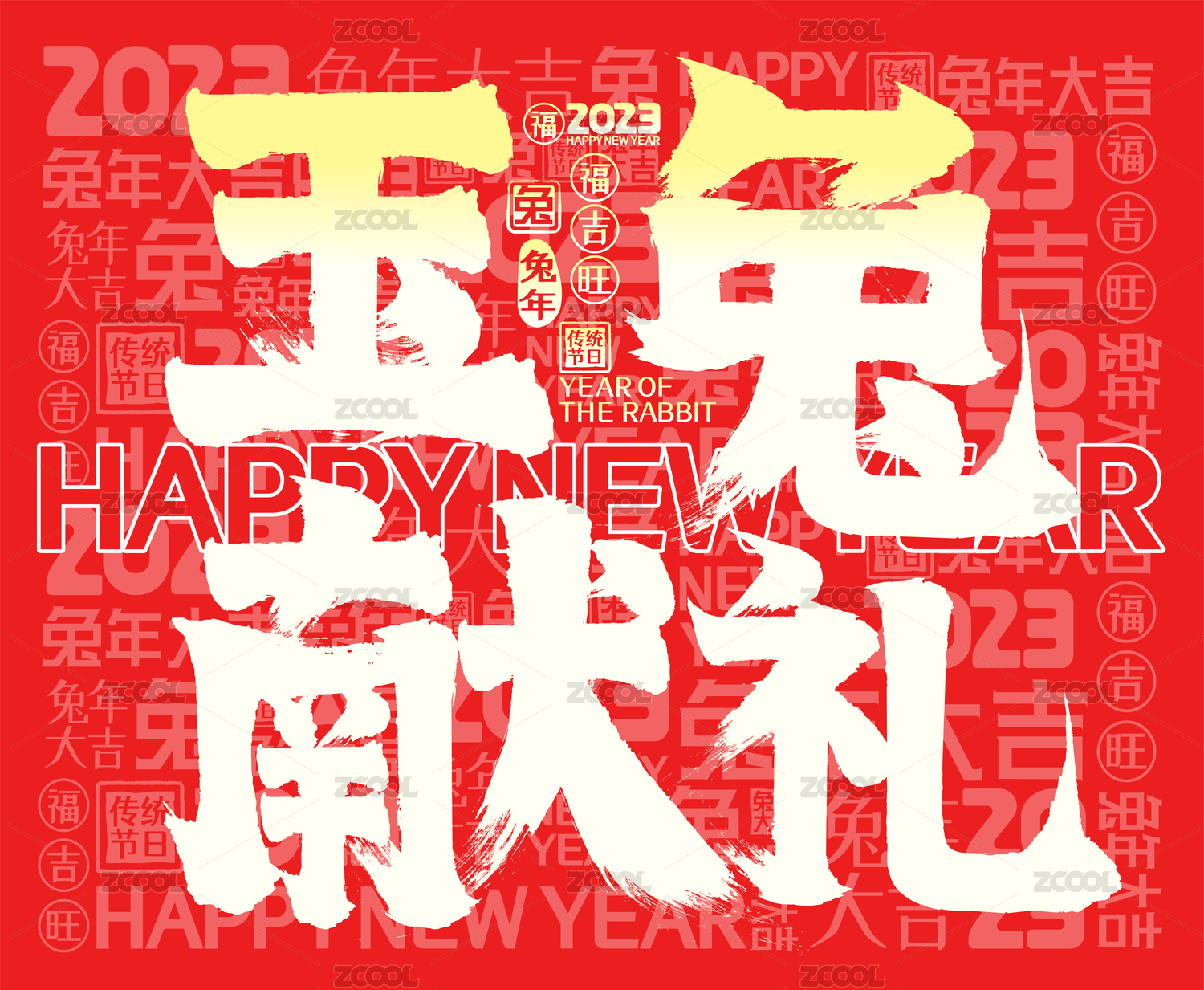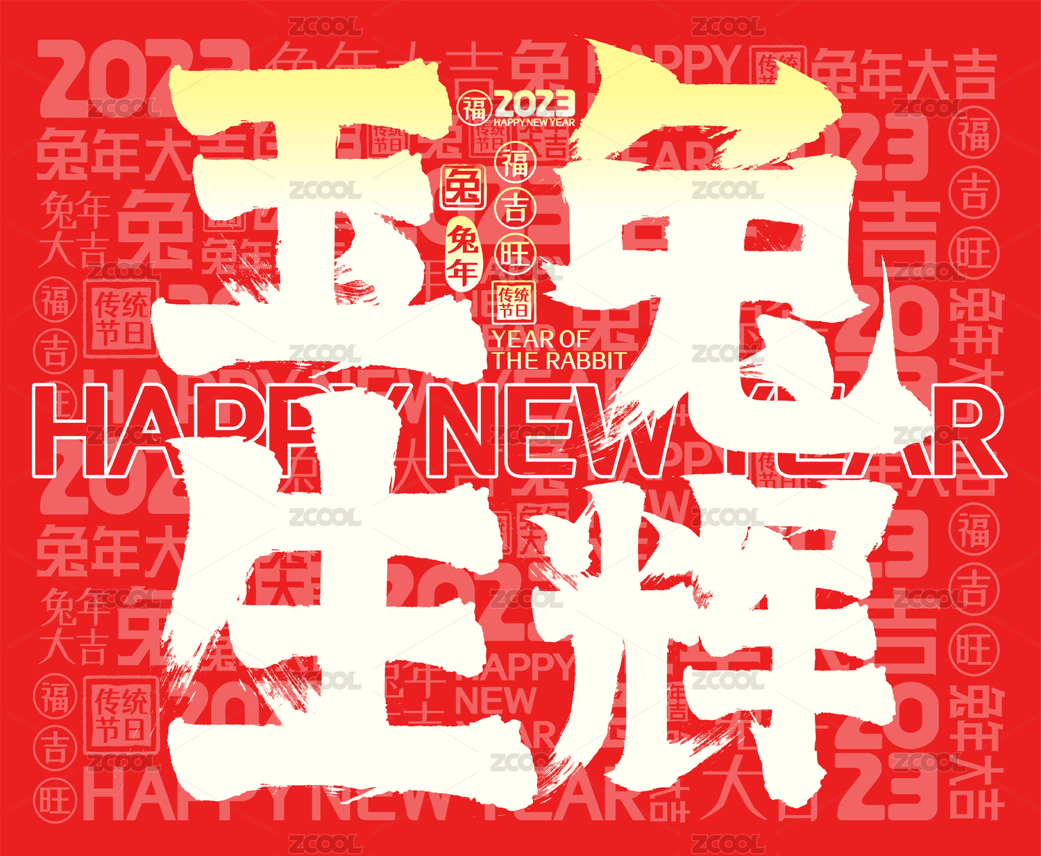 2023玉兔献礼喜庆中国红兔年春节毛笔字