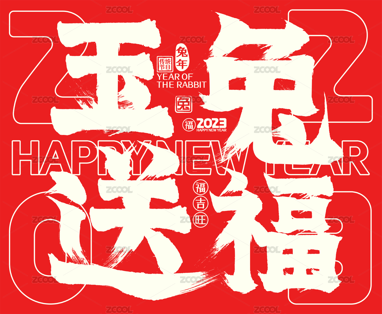 2023玉兔迎祥喜庆中国红兔年春节毛笔字