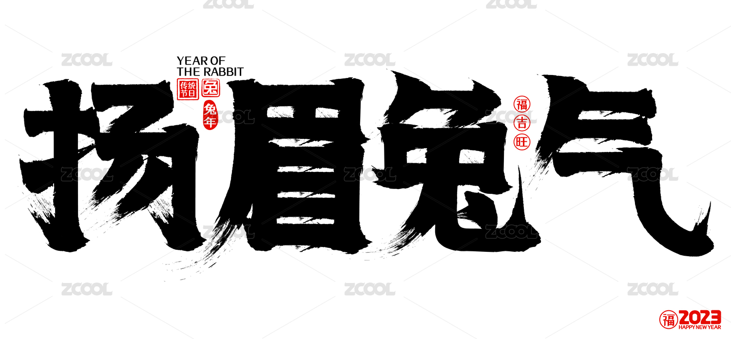 2023兔年如意新年春节矢量书法字