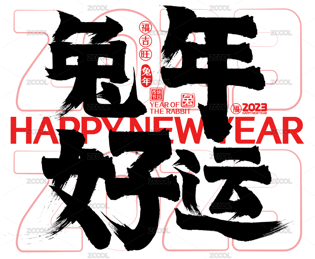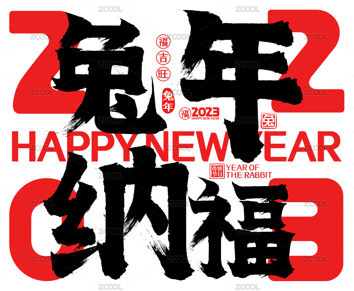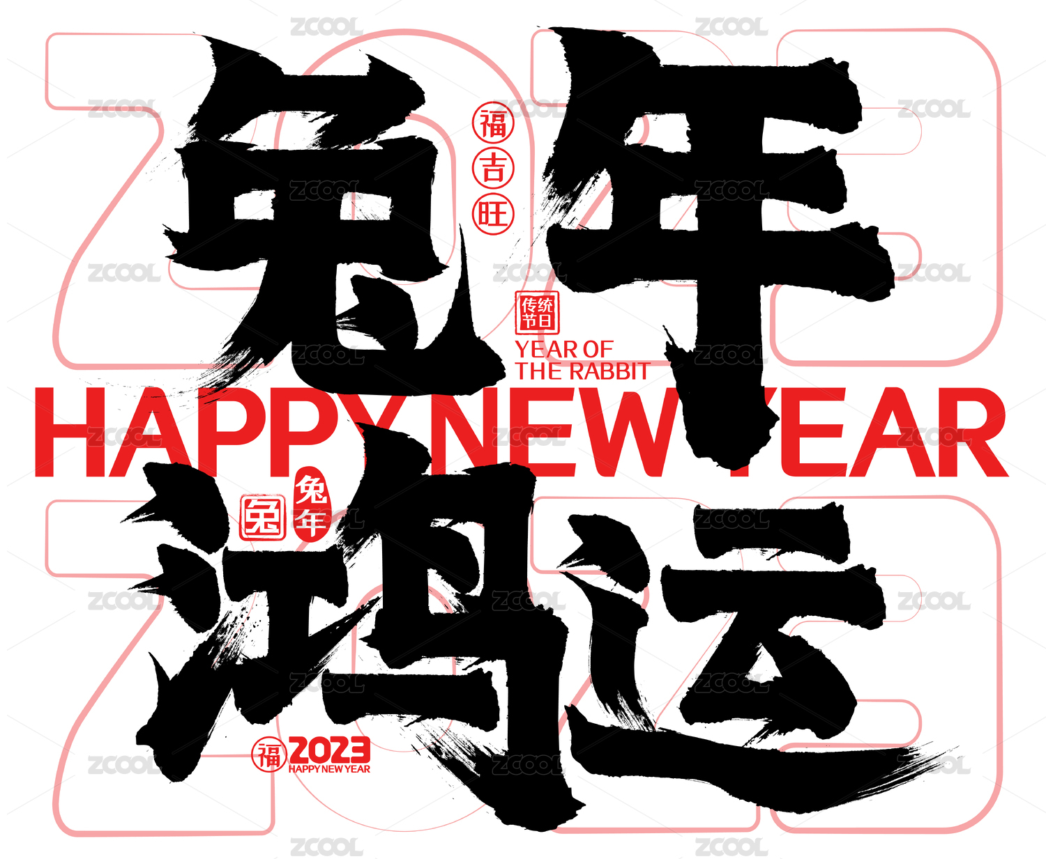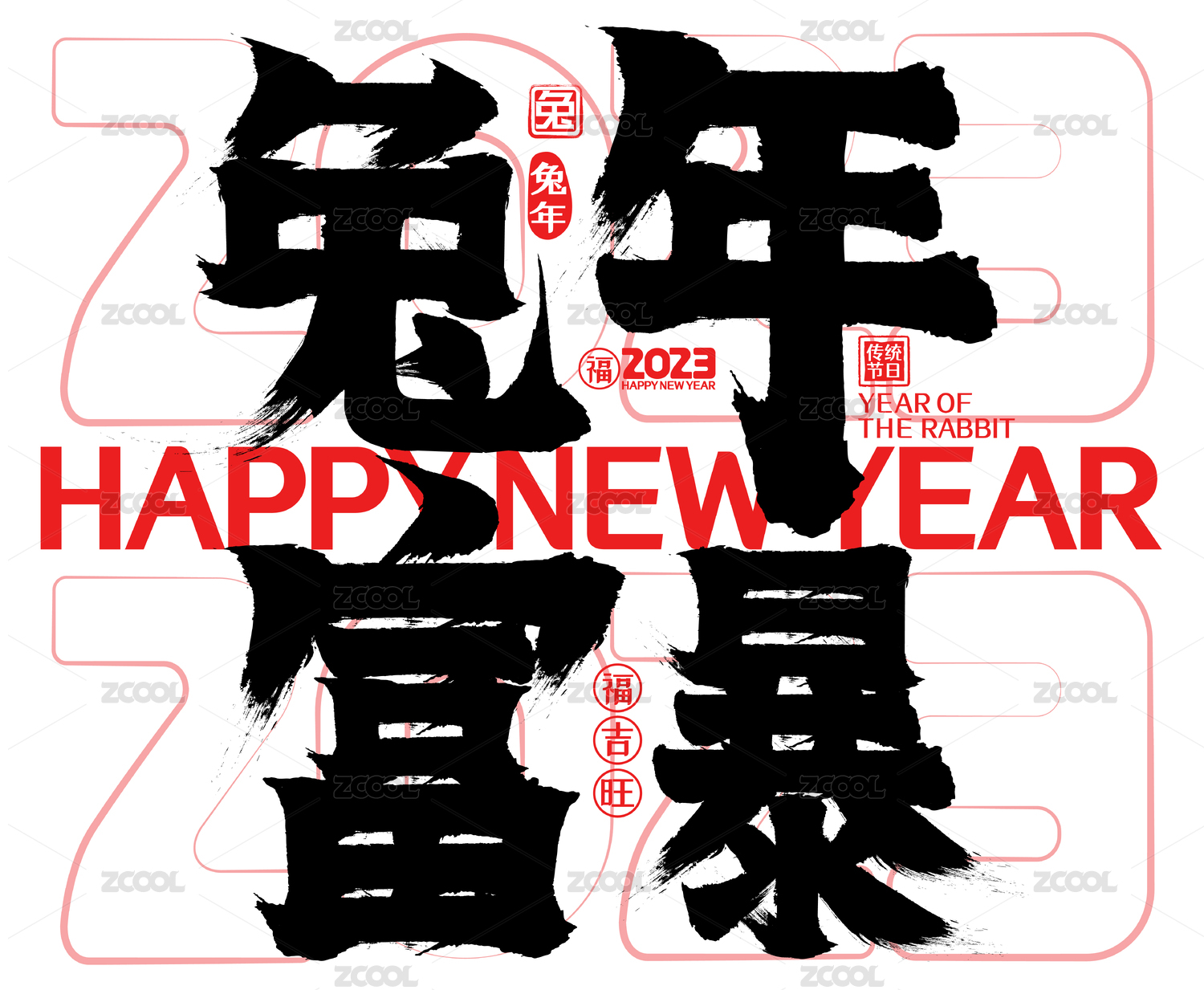 2023兔年快乐喜庆中国红春节新年毛笔字