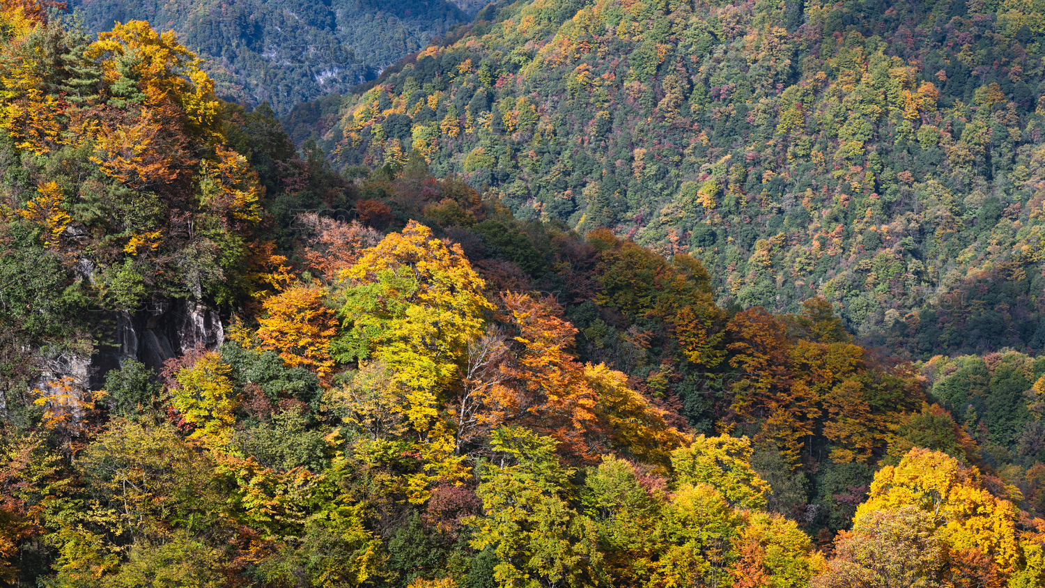 中国四川邓生沟到卧龙镇350国道彩林秋色