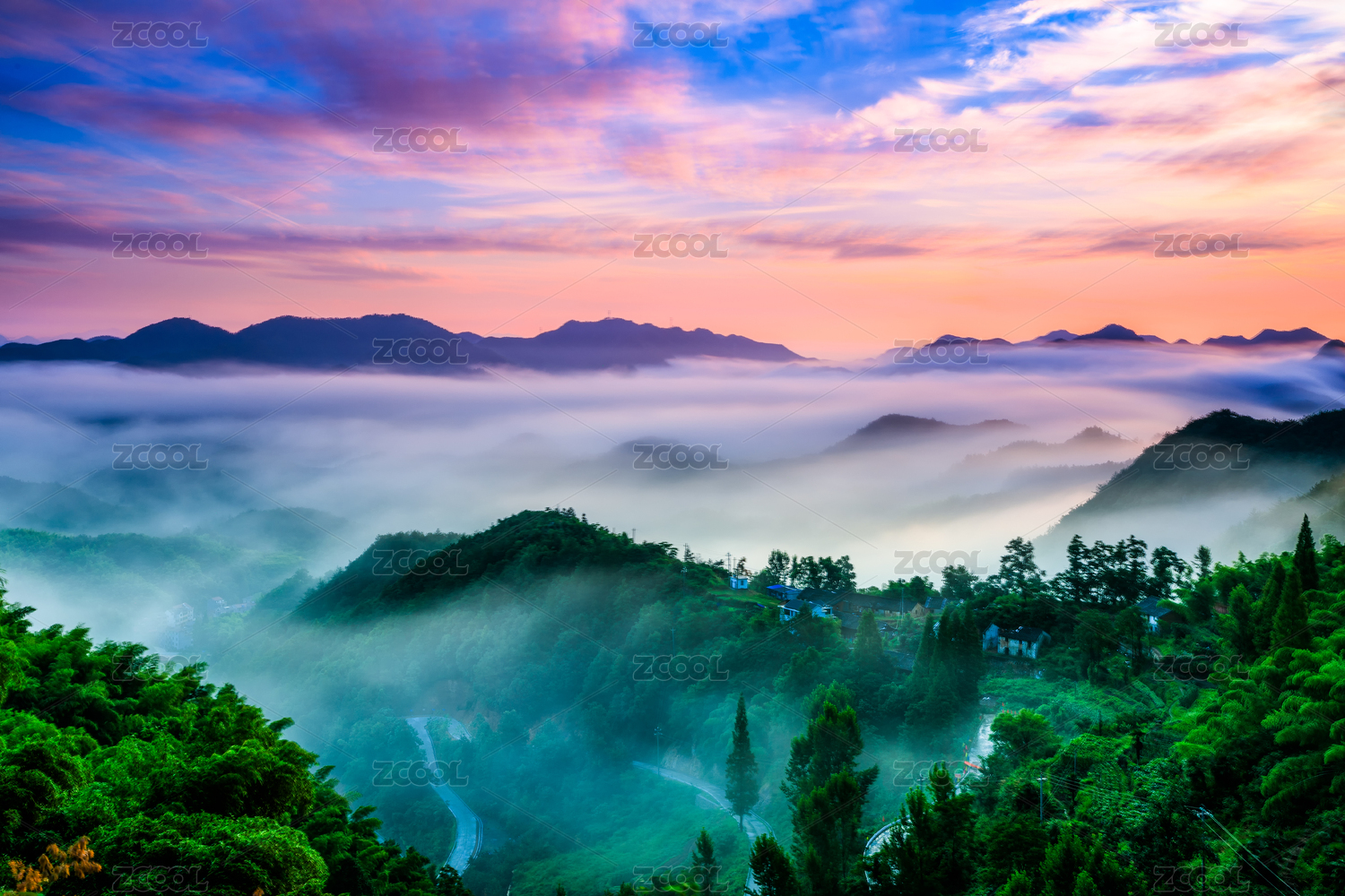 夏季早晨重庆綦江区万盛黑山镇南门村的云海与朝霞