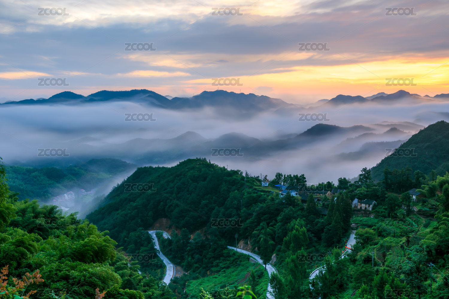 浙江浦江原始村落山路云海风光