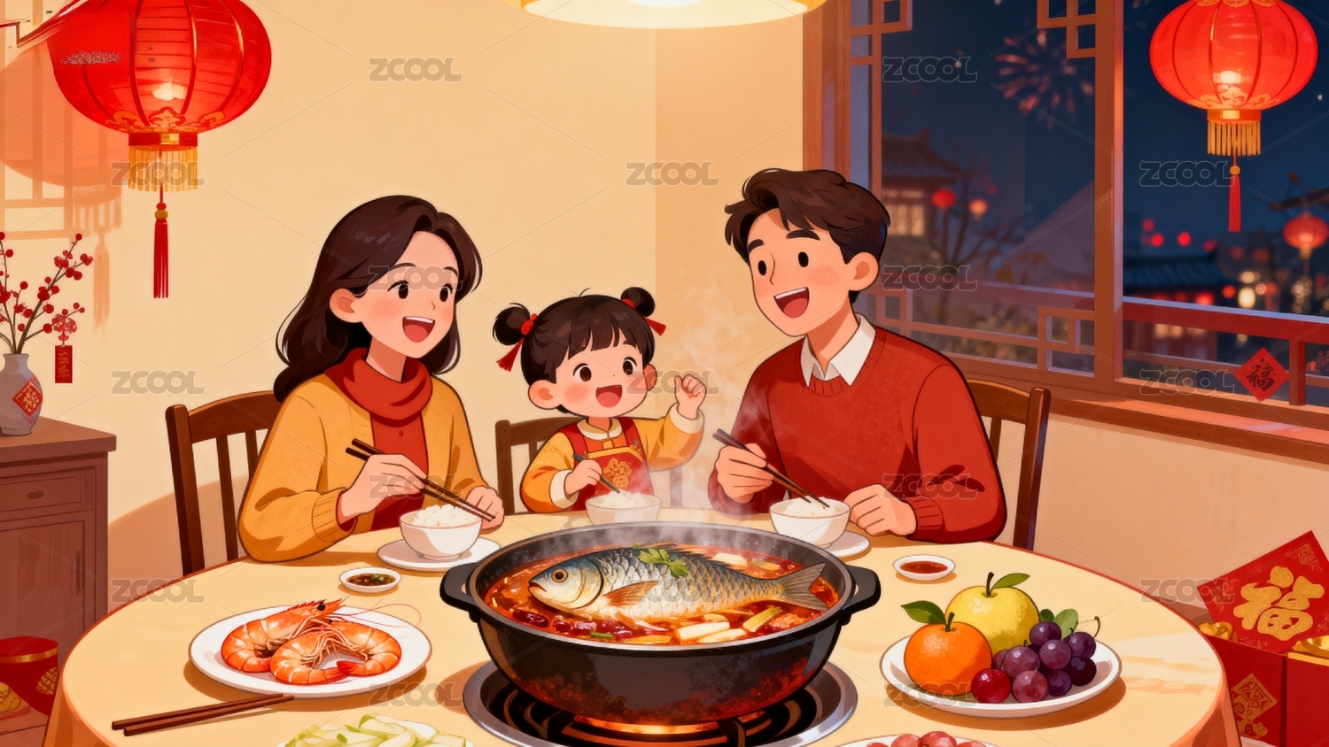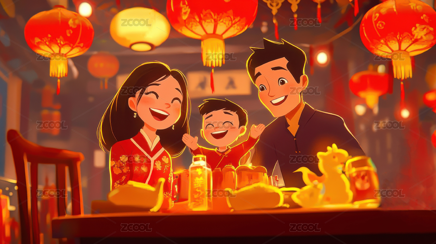 新年,春节,元宵节,中国新年,合家欢,团圆,家人,家庭,中国风,卡通