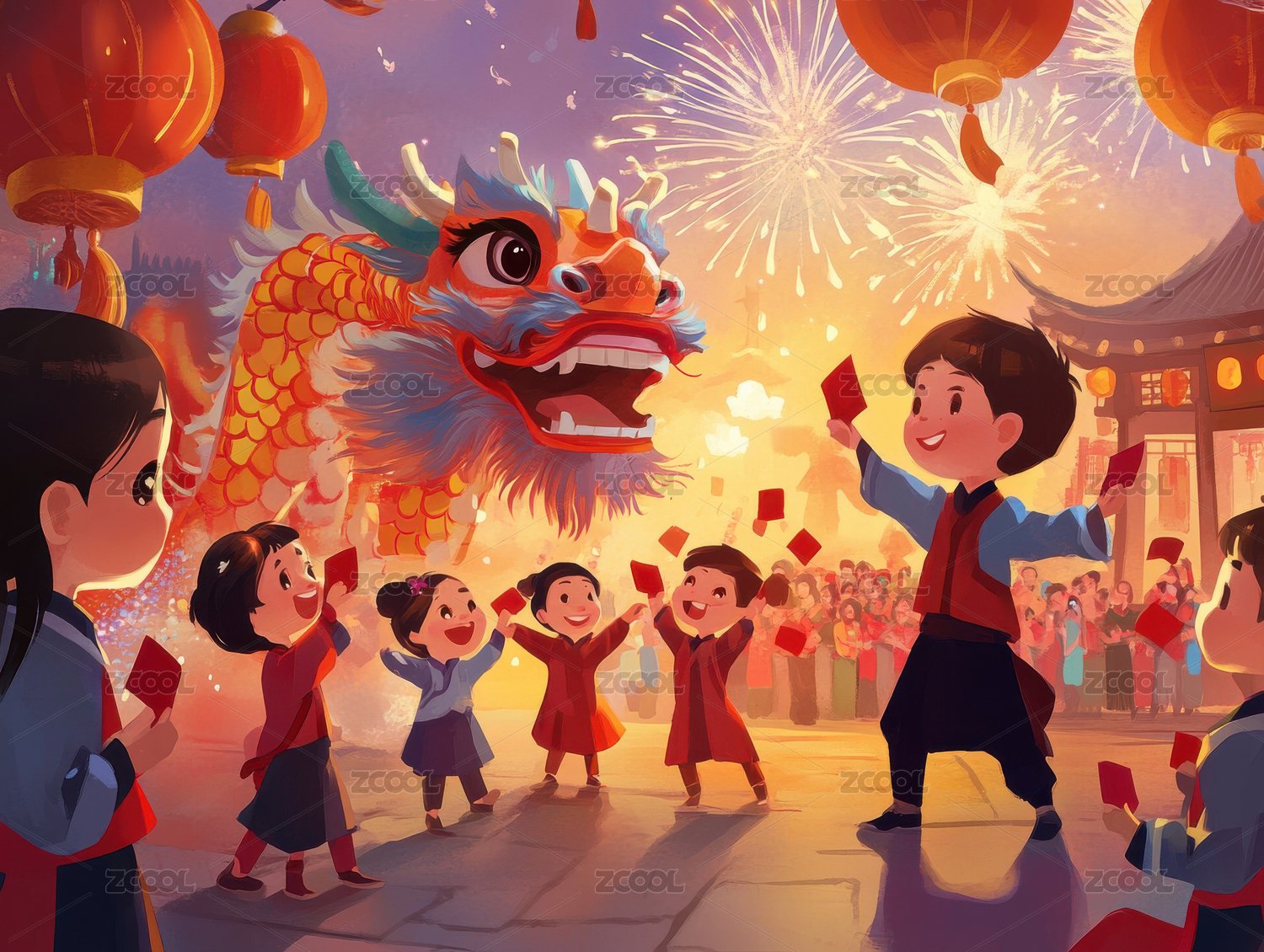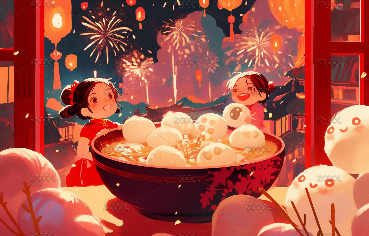 新年,春节,元宵节,中国新年,儿童,中国风,小孩,卡通,插画,中国传统节日