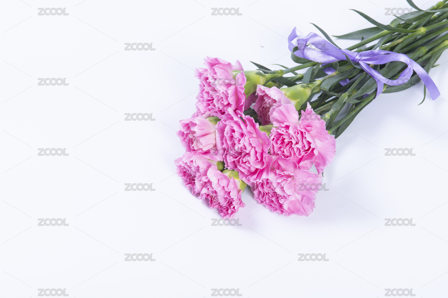 白背景上一束康乃馨鲜花