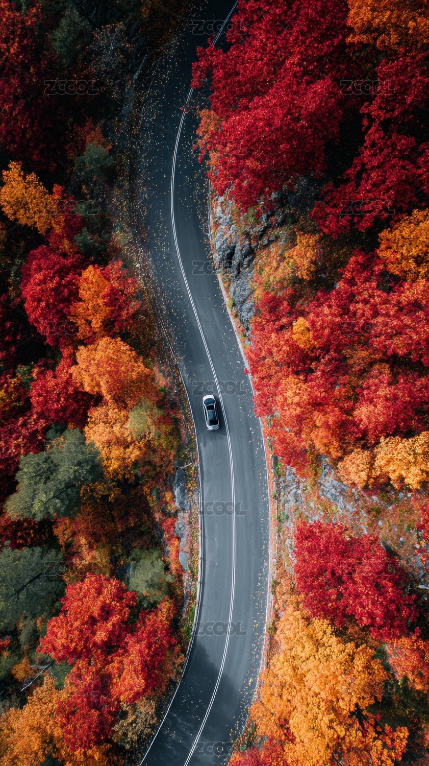 秋景,树林,小路,落叶,枫叶,金色,橙色,红色,水彩画,风景画