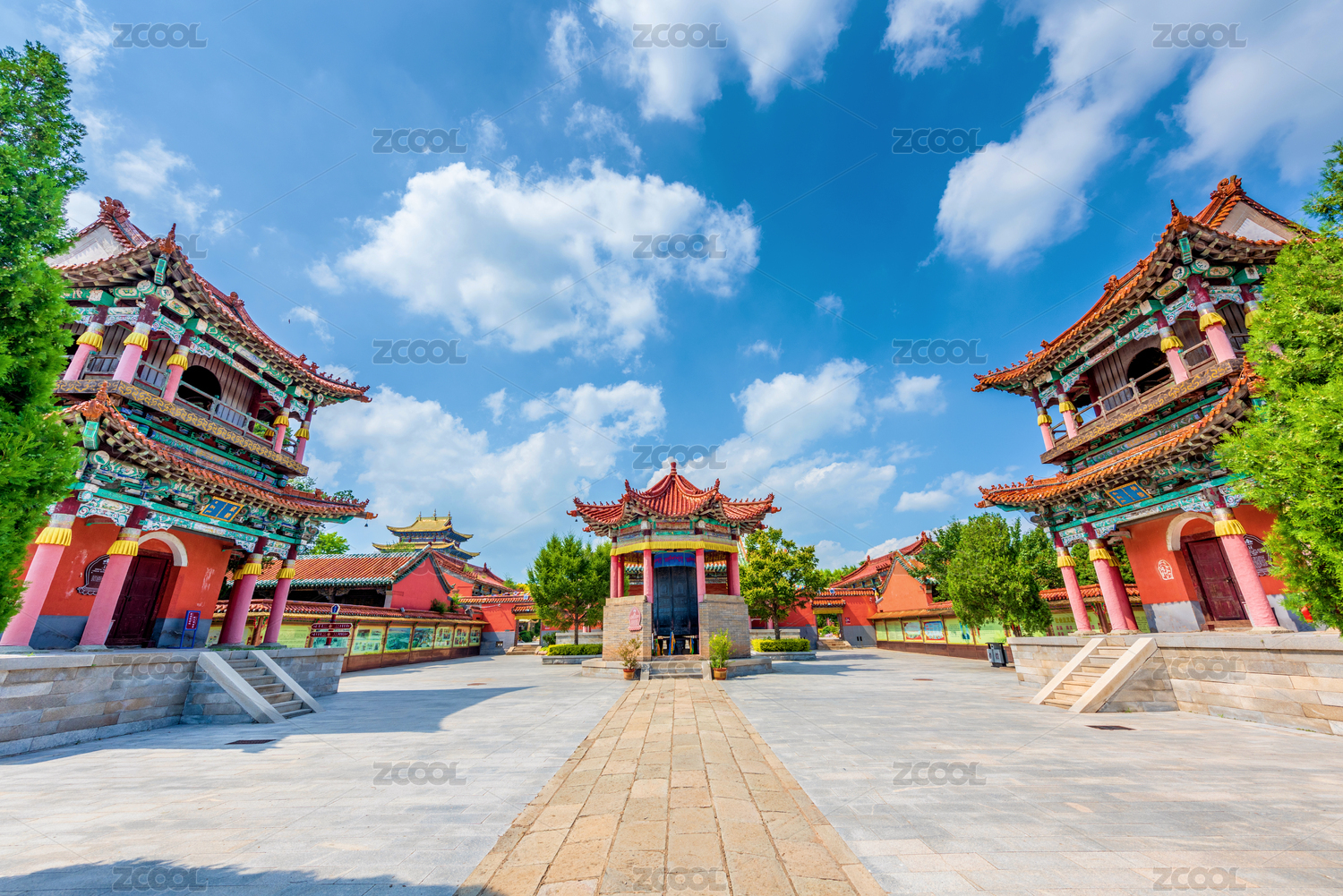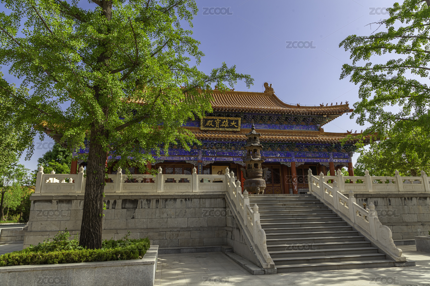 中国山东省寿光市林海生态博览园宁国寺殿宇中间的中式门楼