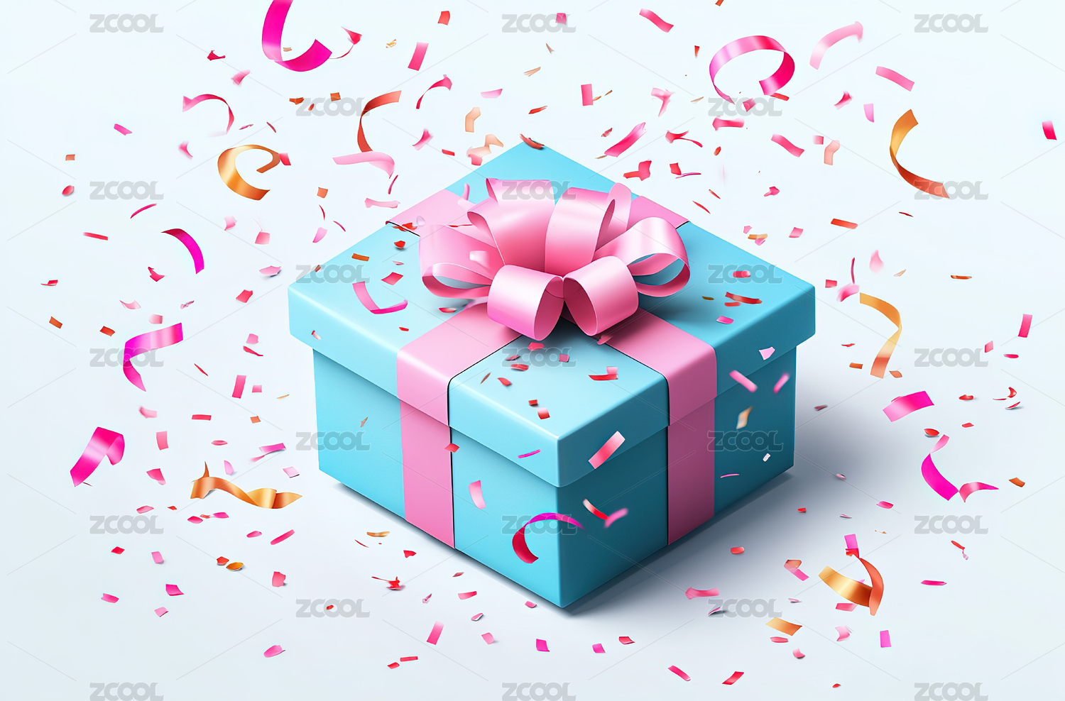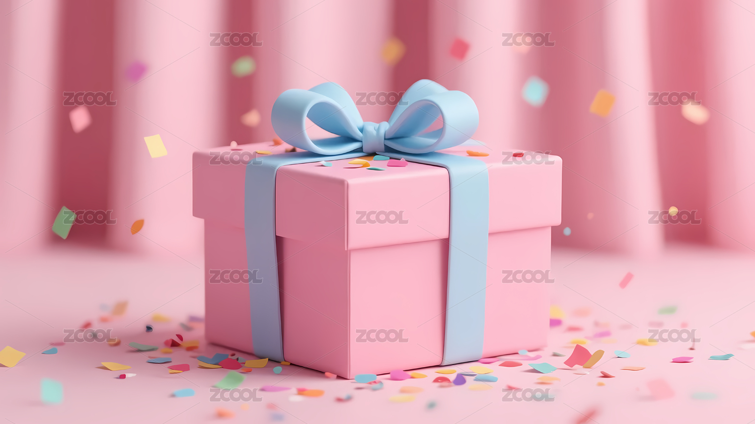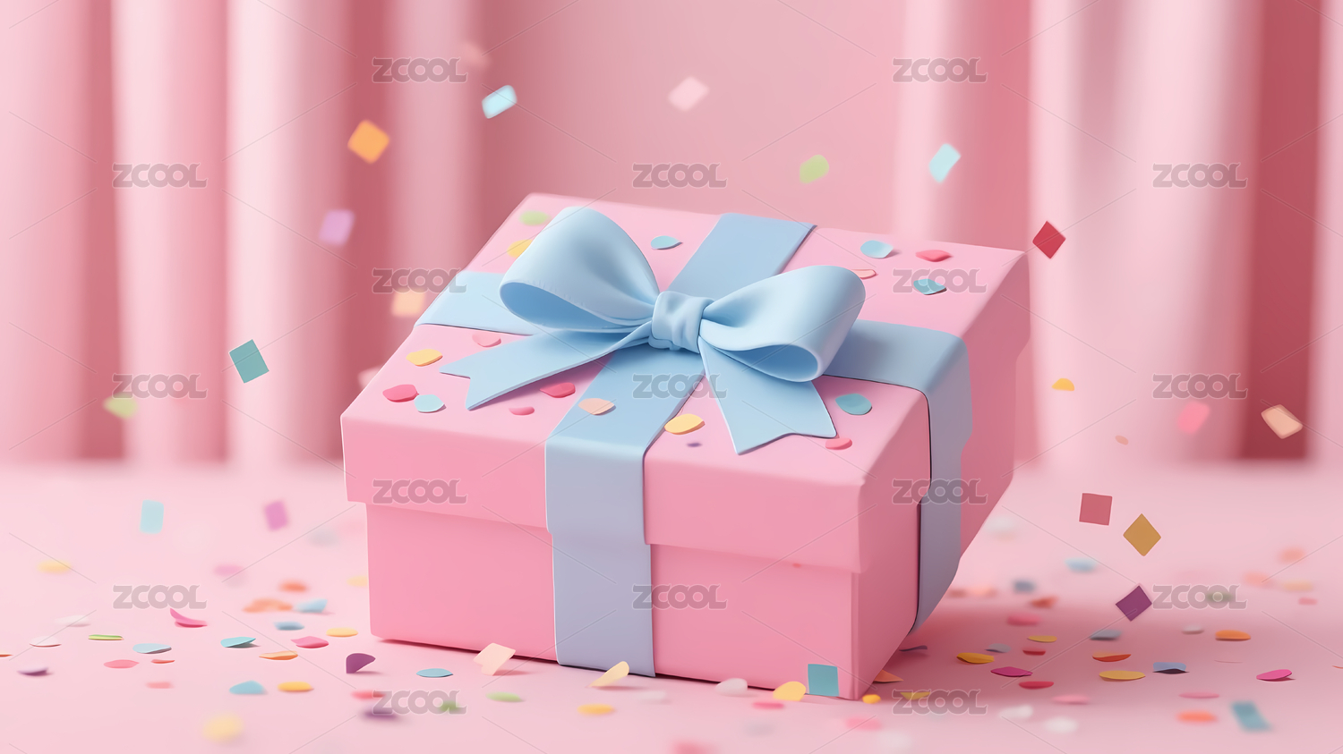 粉色礼盒与蓝色蝴蝶结的优雅呈现