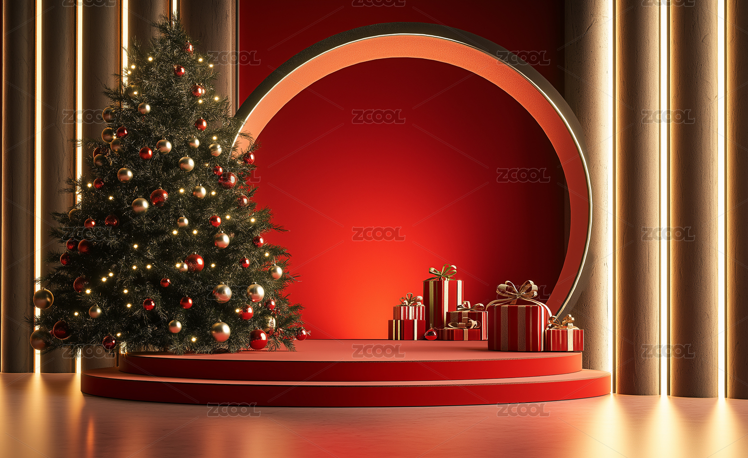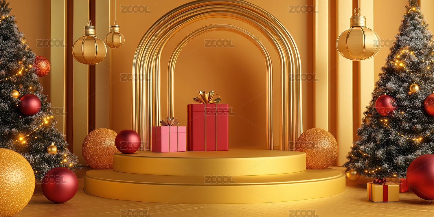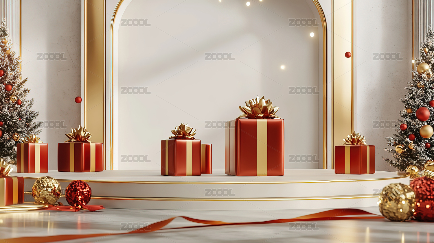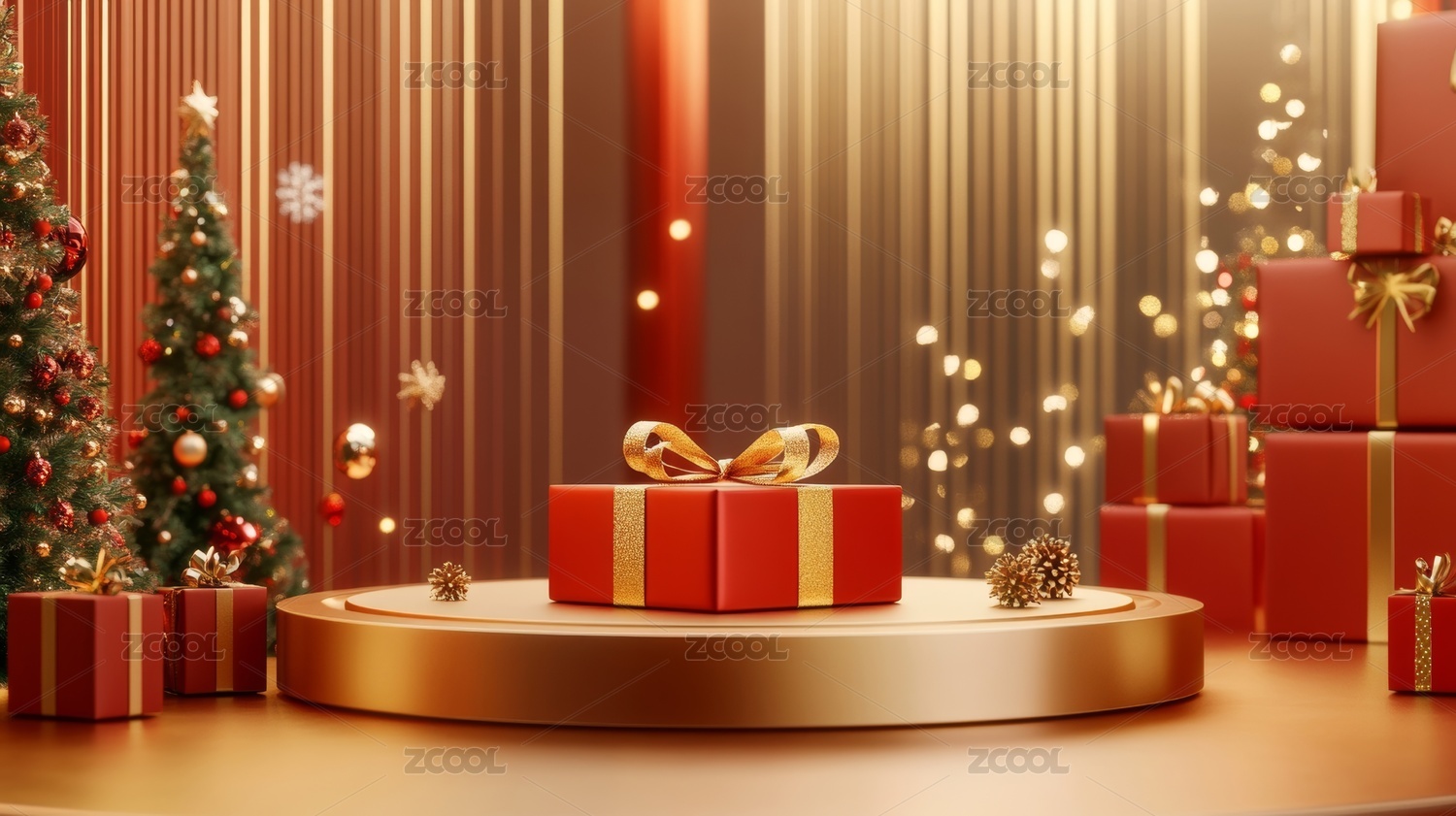 背景,彩带,场景,陈列台,电商,缎带,红色,节日,金色,礼盒