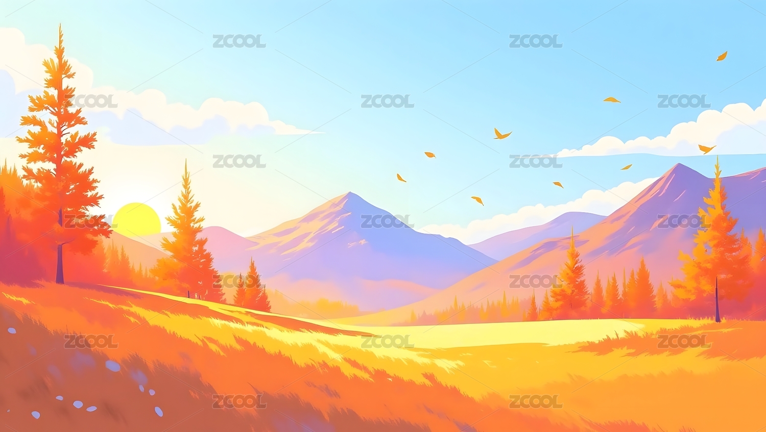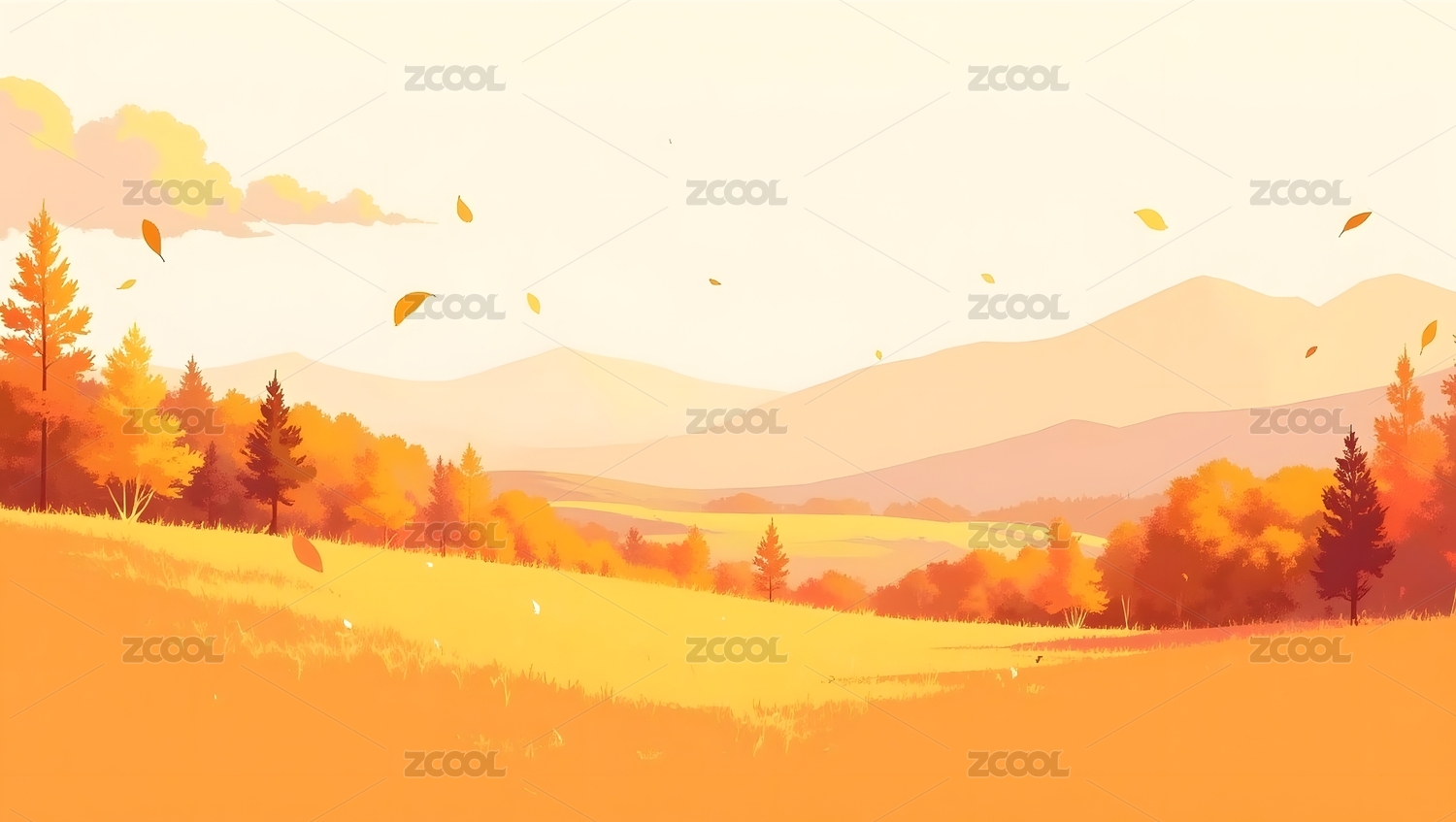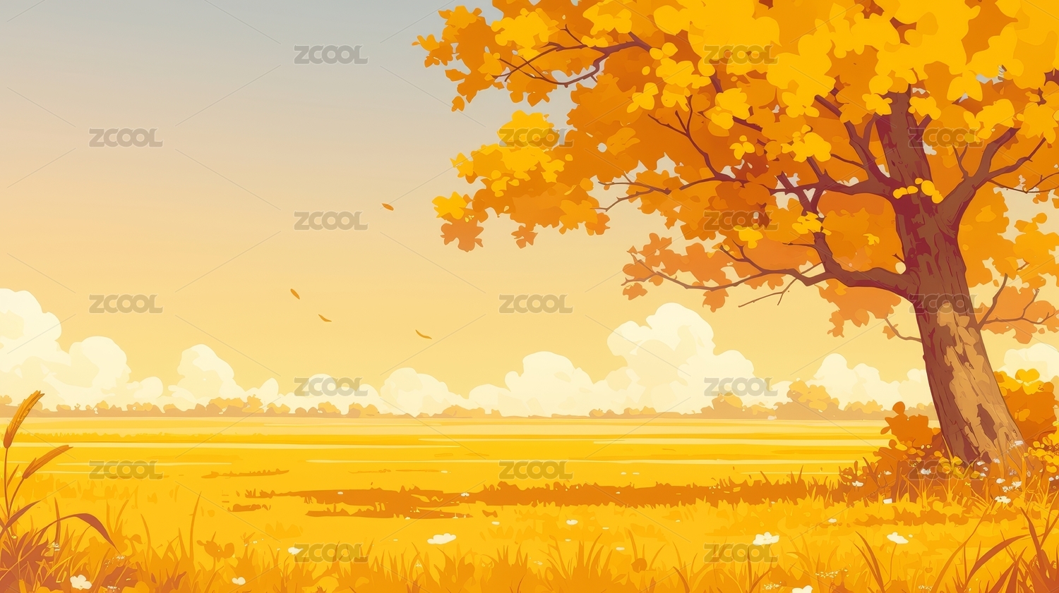 唯美壁纸秋天金秋草原风景插画