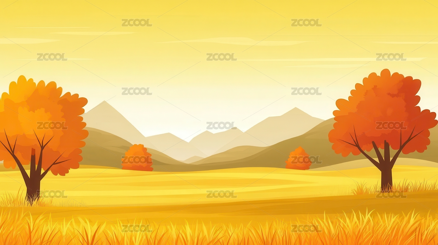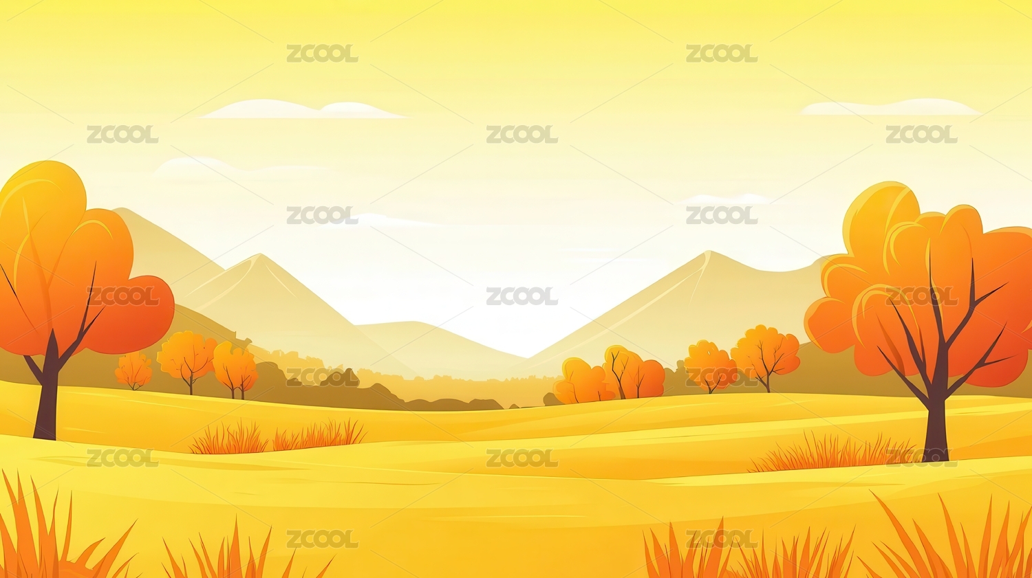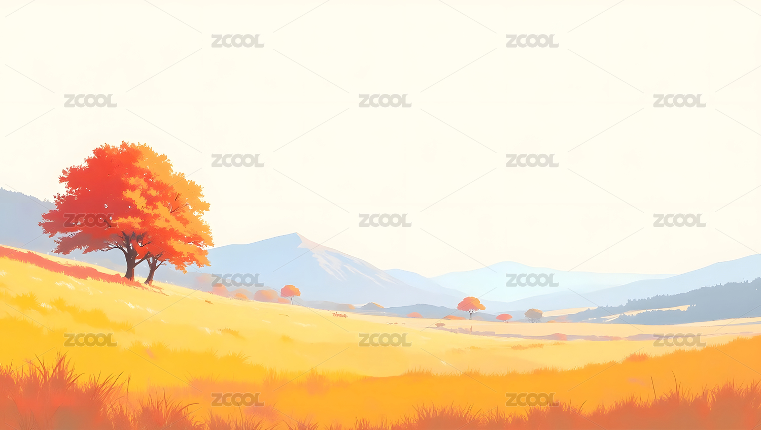 唯美壁纸秋天金秋草原风景插画
