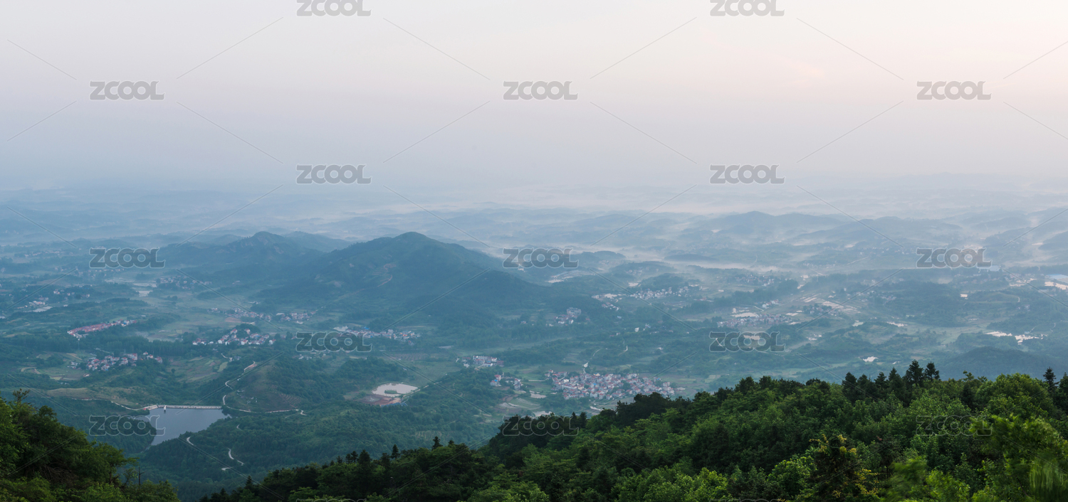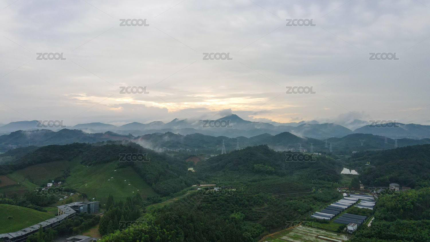 重庆云龟山山间晨雾下的青山连绵与村庄、道