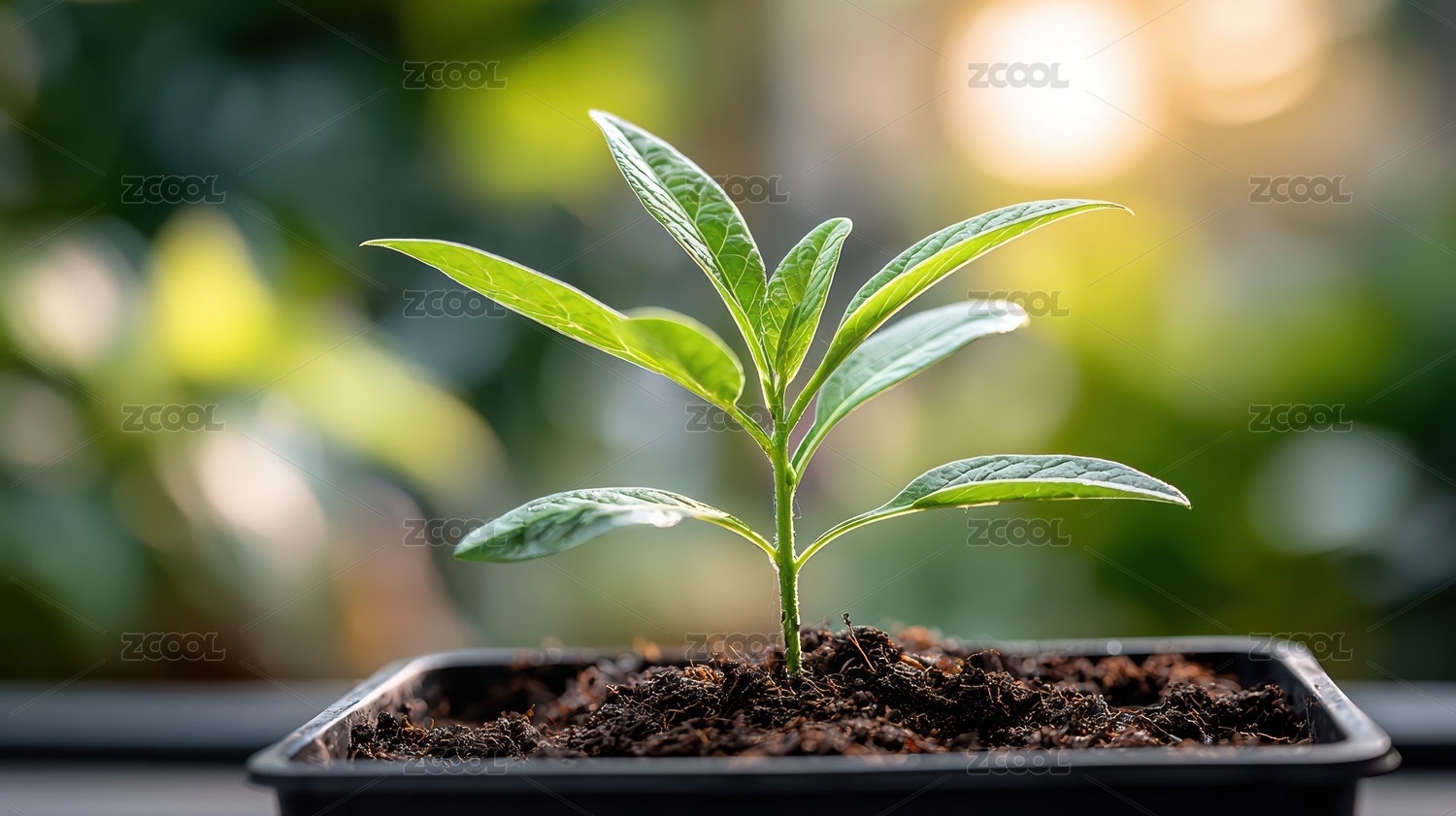 唯美的光斑背景上的小型植物盆栽