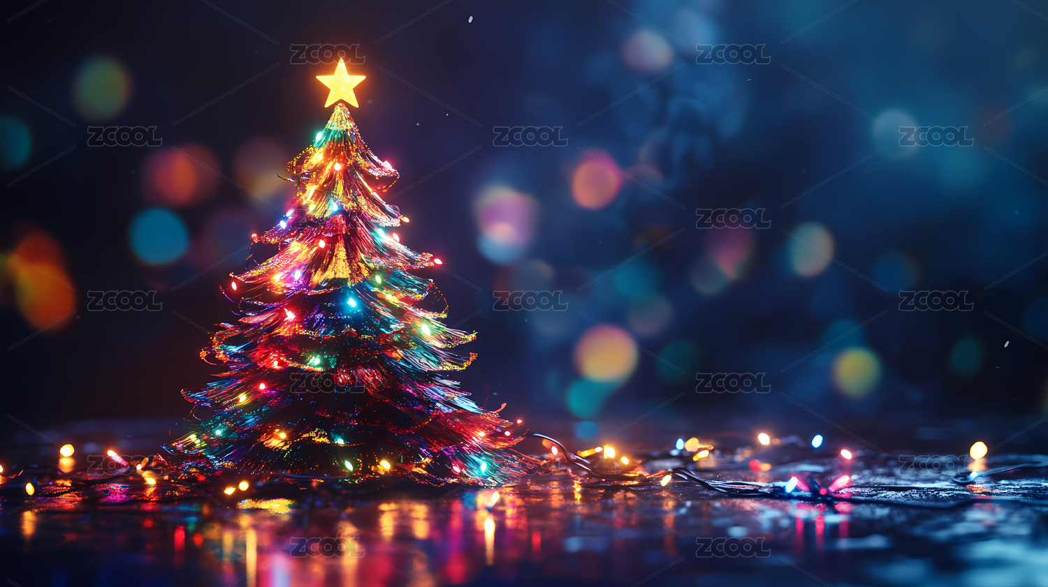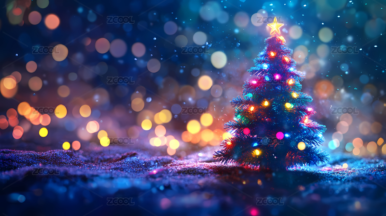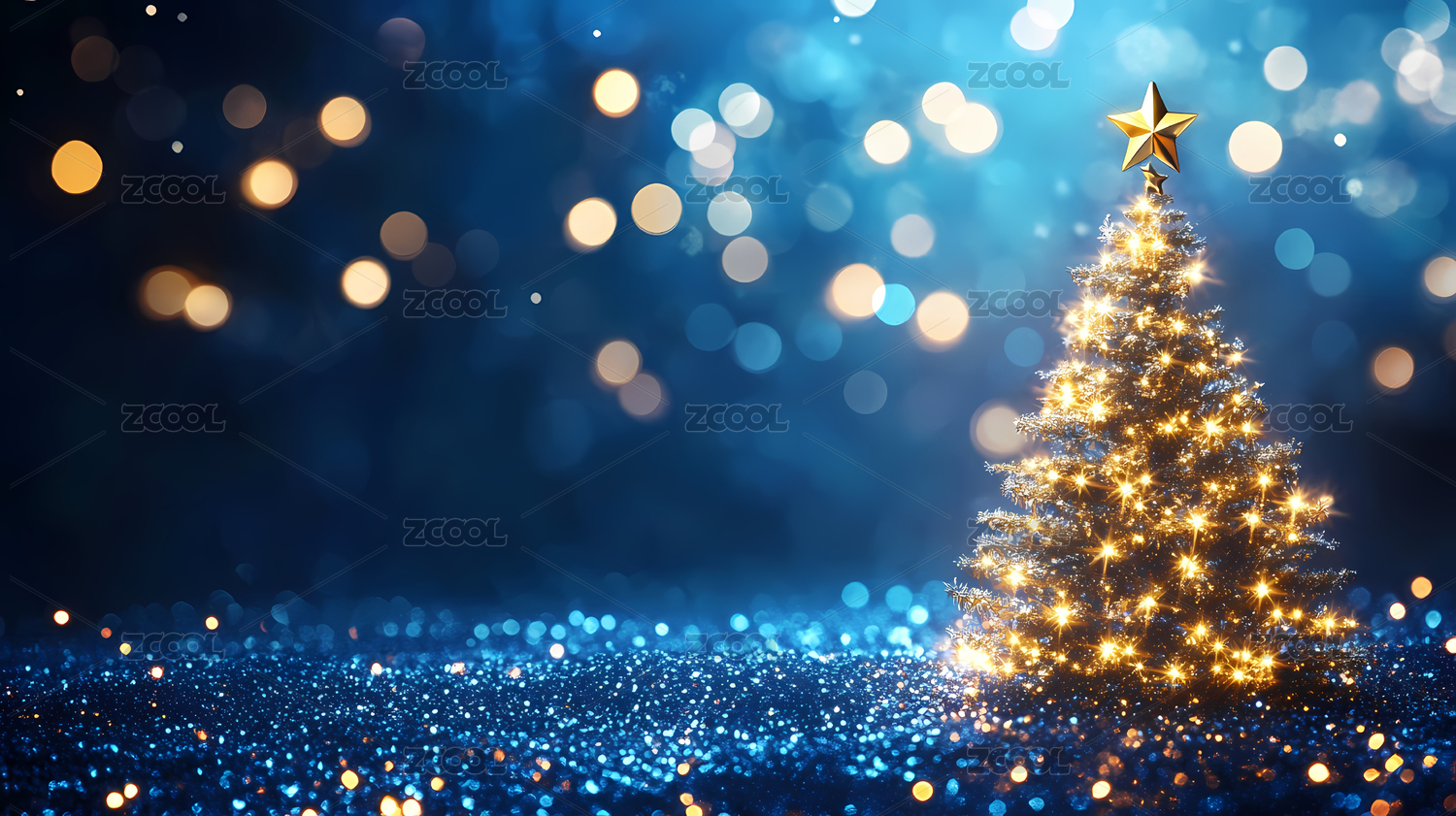 灯光,发光,夜晚,星星,光线,蓝色,圣诞树,彩灯,装饰,节日
