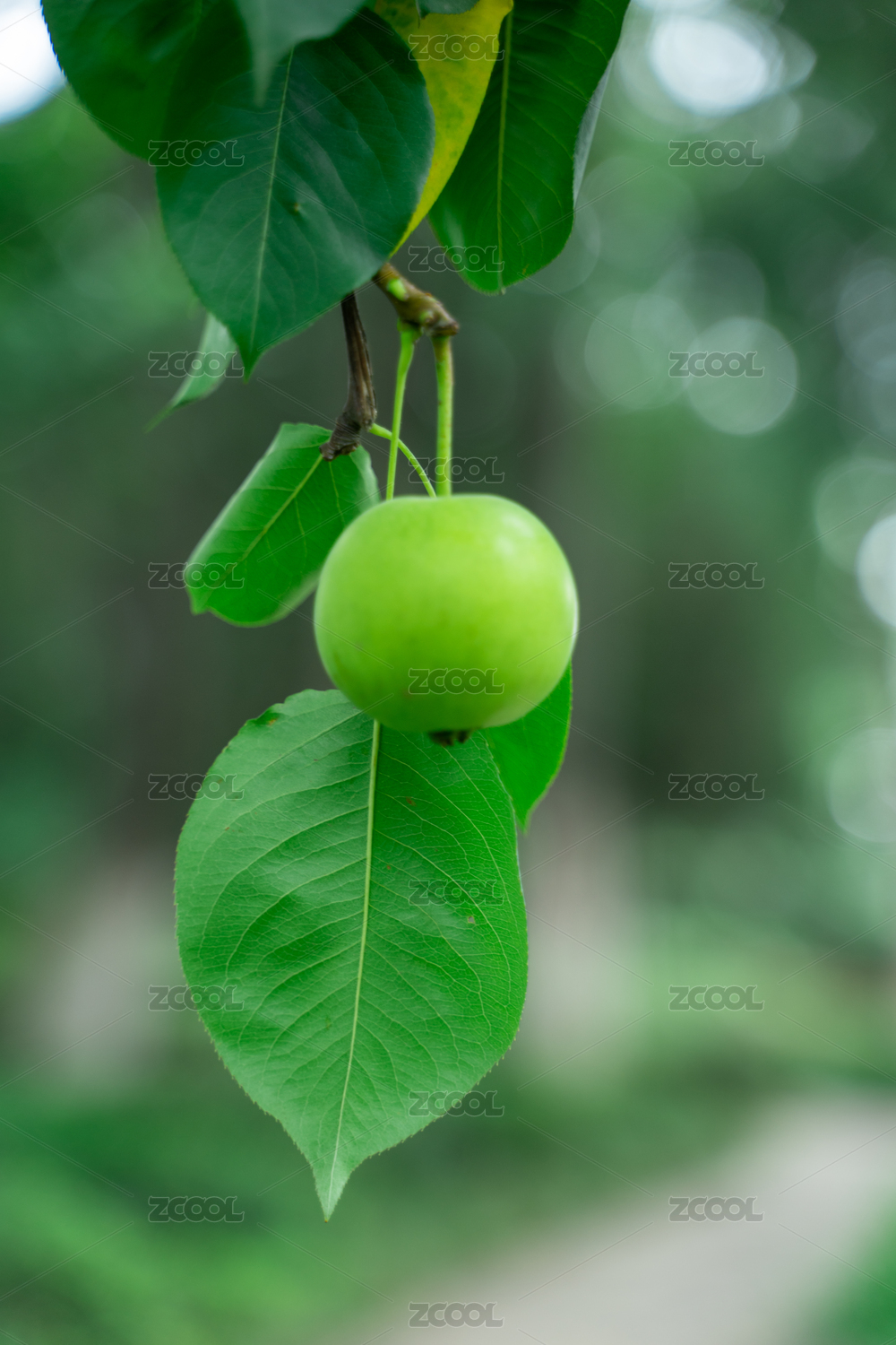 枝头即将成熟的海棠果子