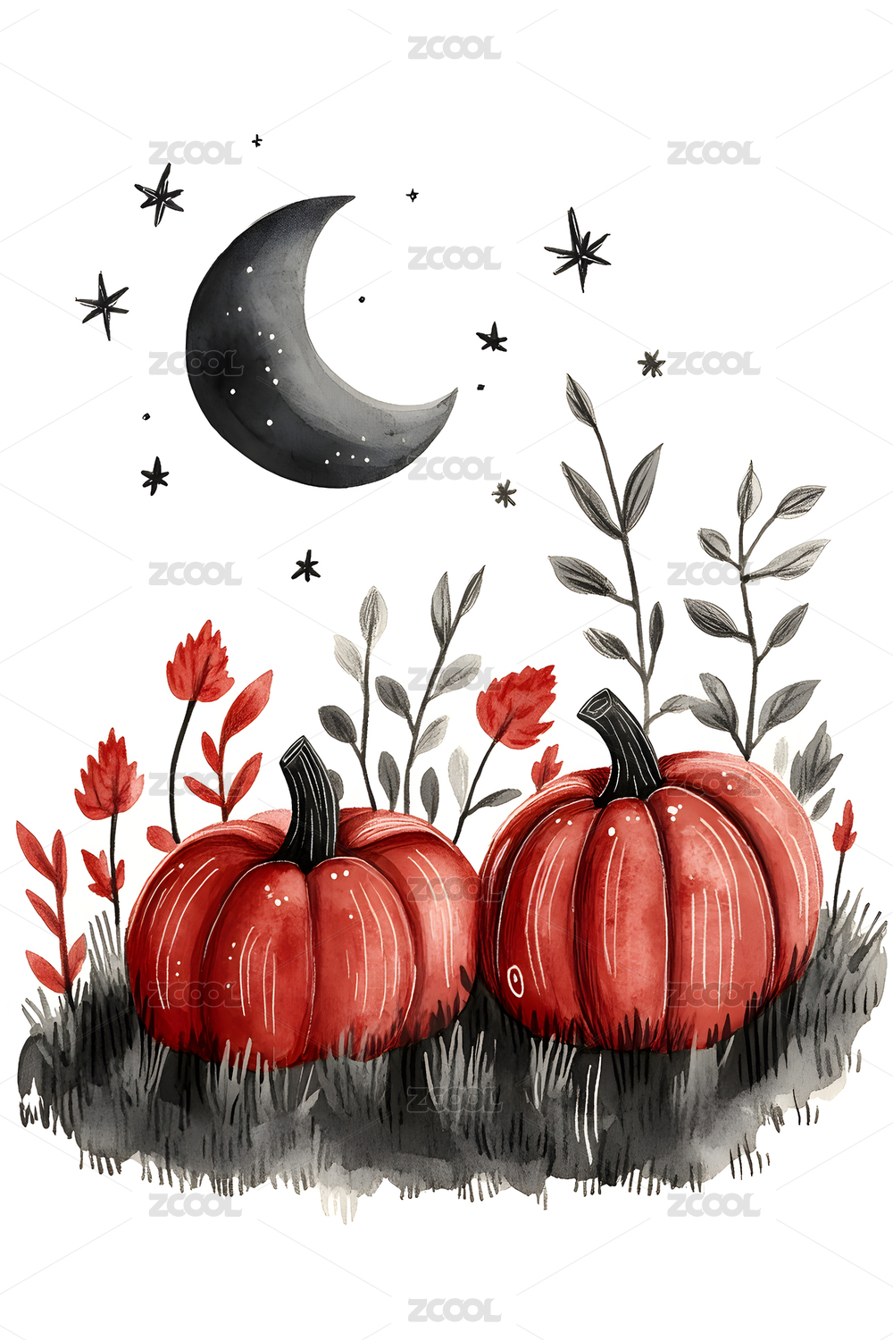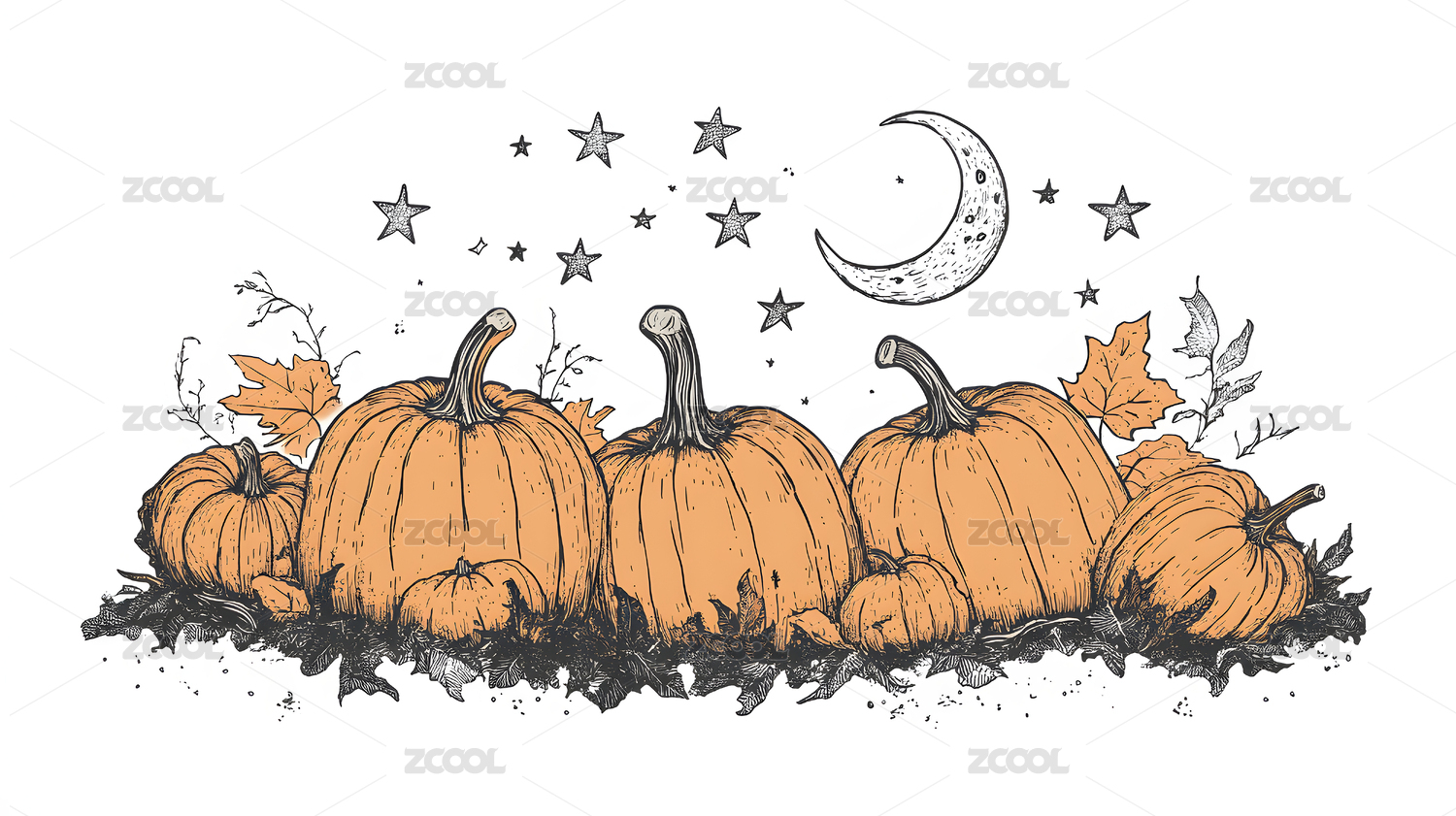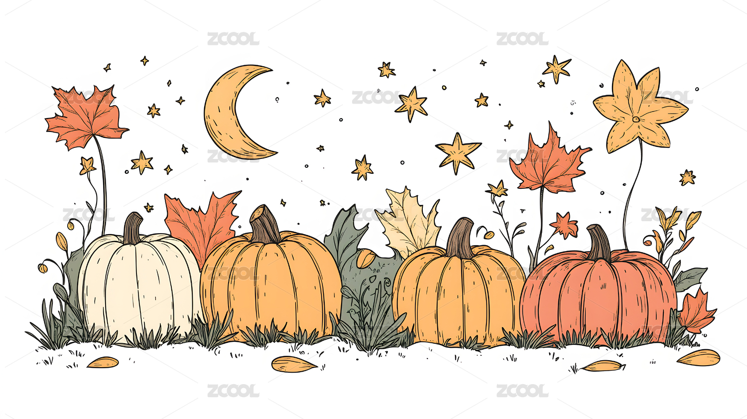 扁平,水彩,秋天,写意,丰收,食物,南瓜,黄色,卡通,手绘
