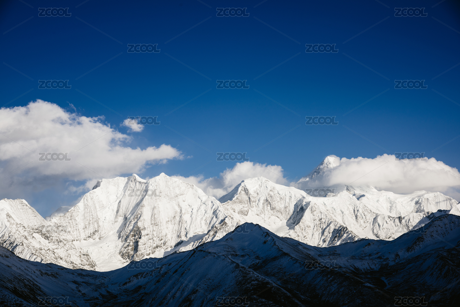 冰雪覆盖的中国贡嘎雪山自然风光