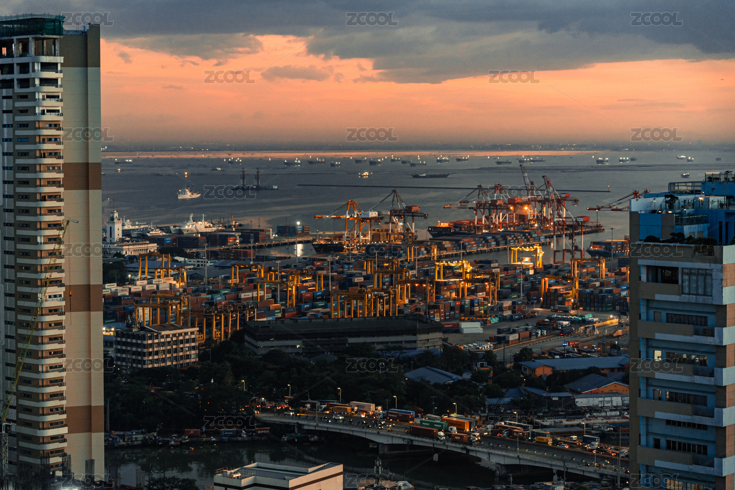 傍晚的泰国曼谷考山路旁的湄南河河岸的景观