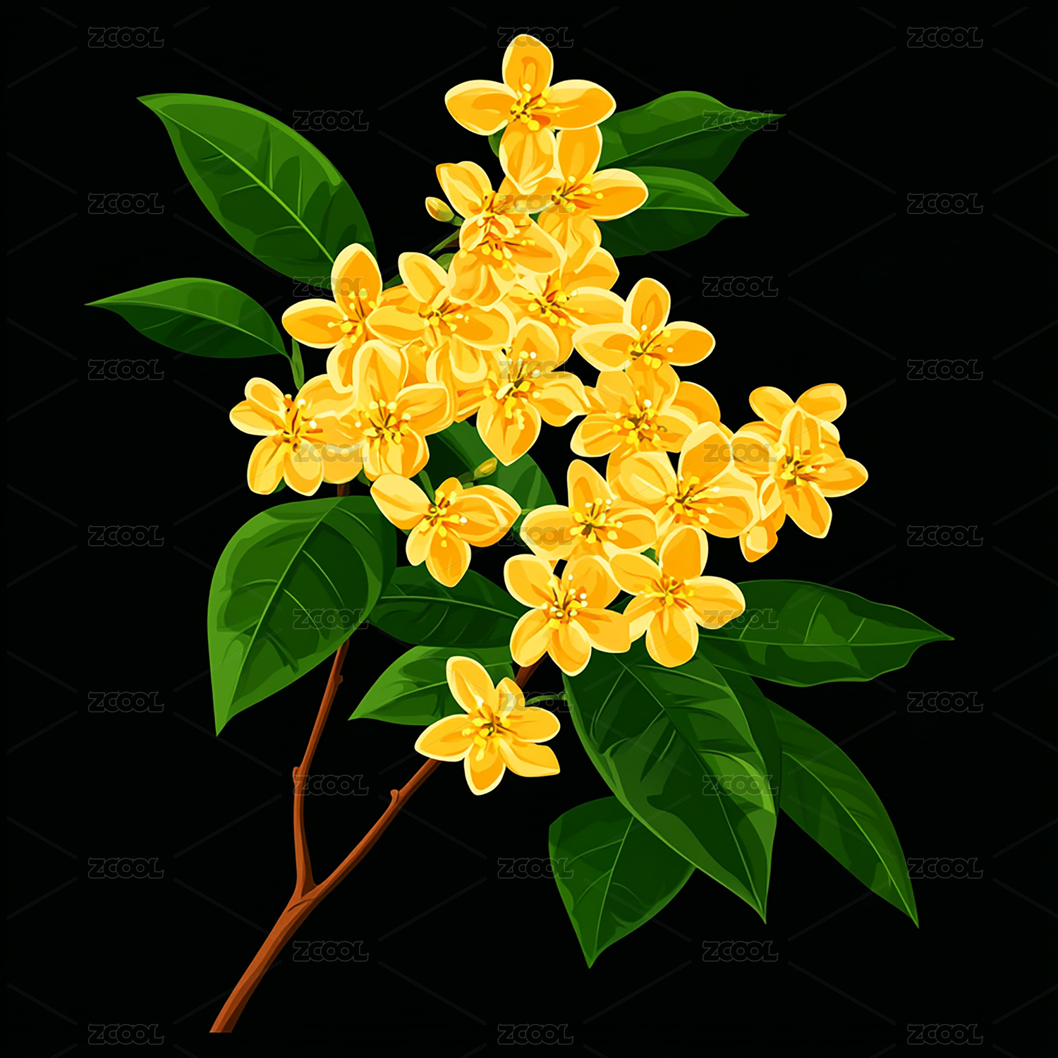 卡通,桂花,花枝,金桂,花,满树,盛开,桂花枝,桂花树