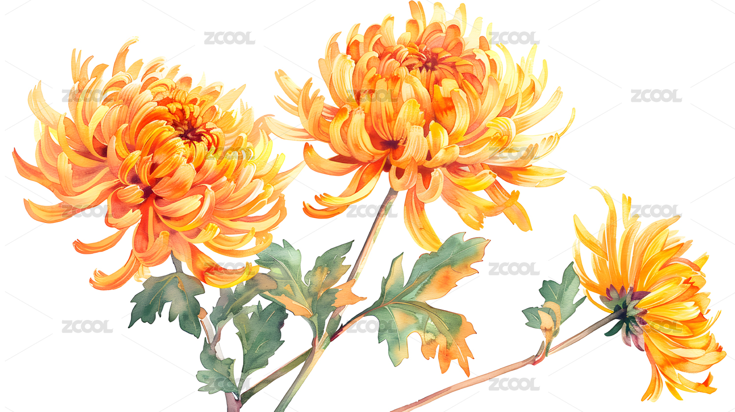 秋天菊花插画,传统秋分节气植物,重阳节概