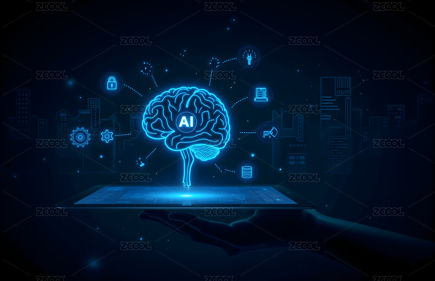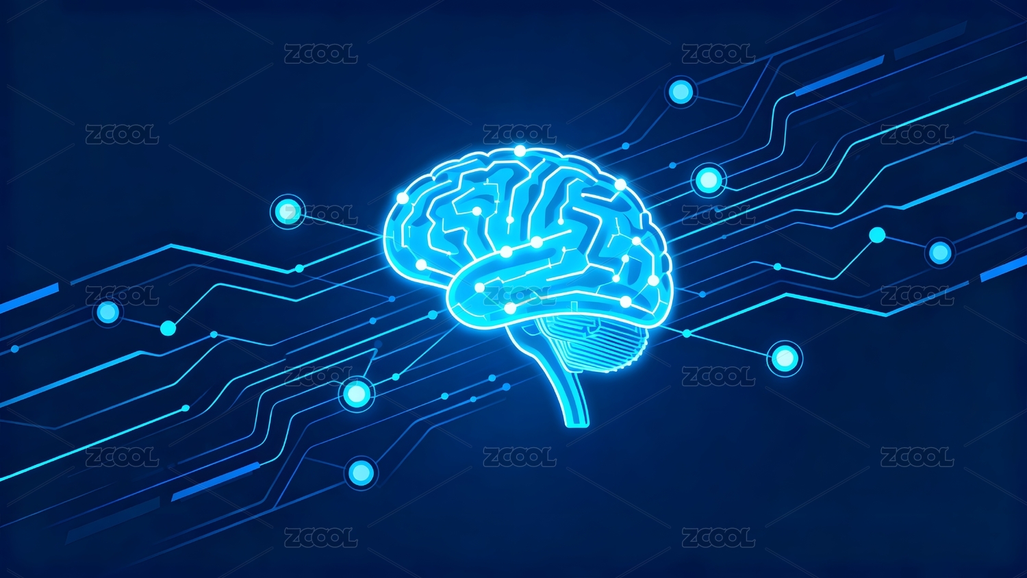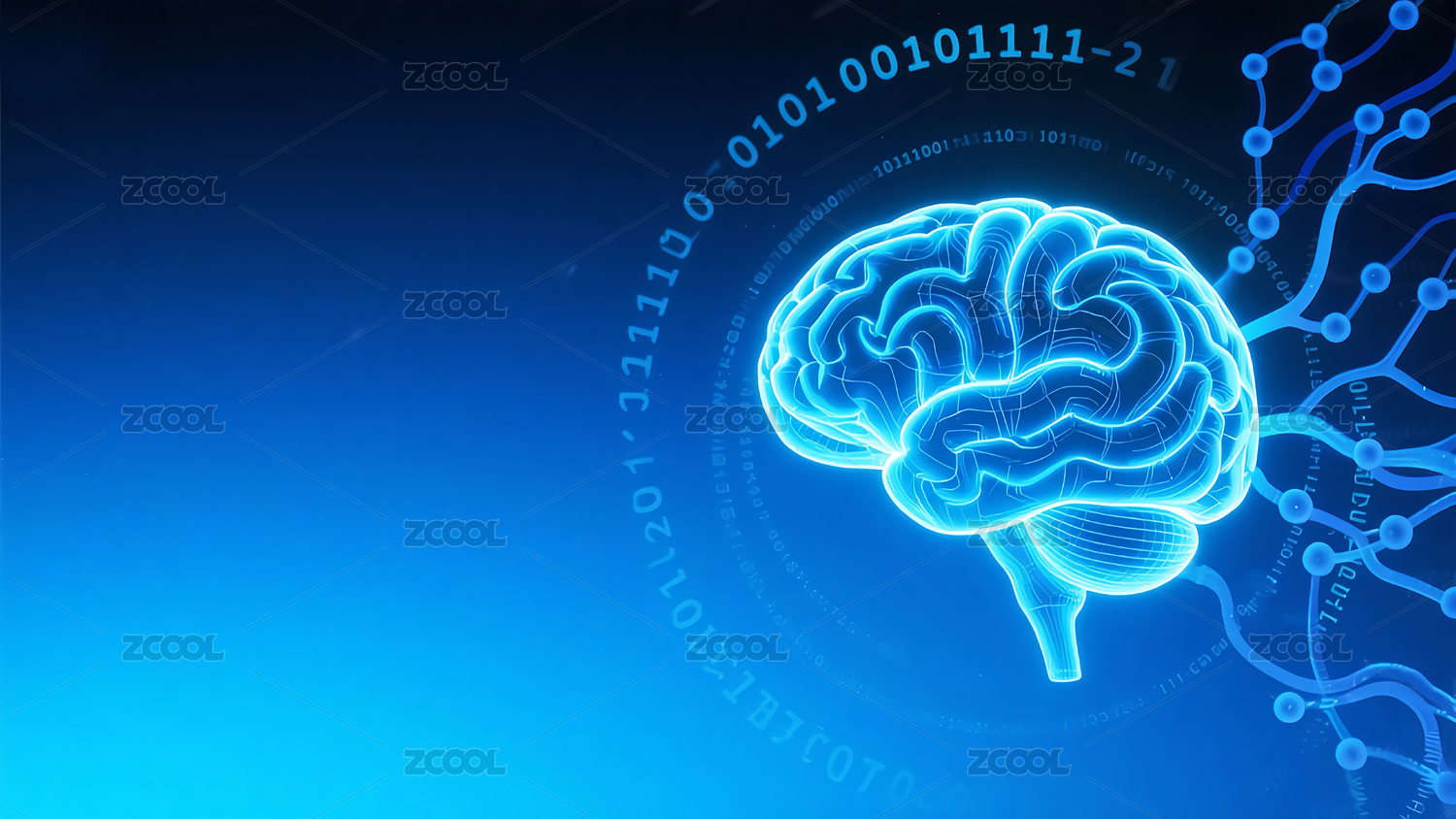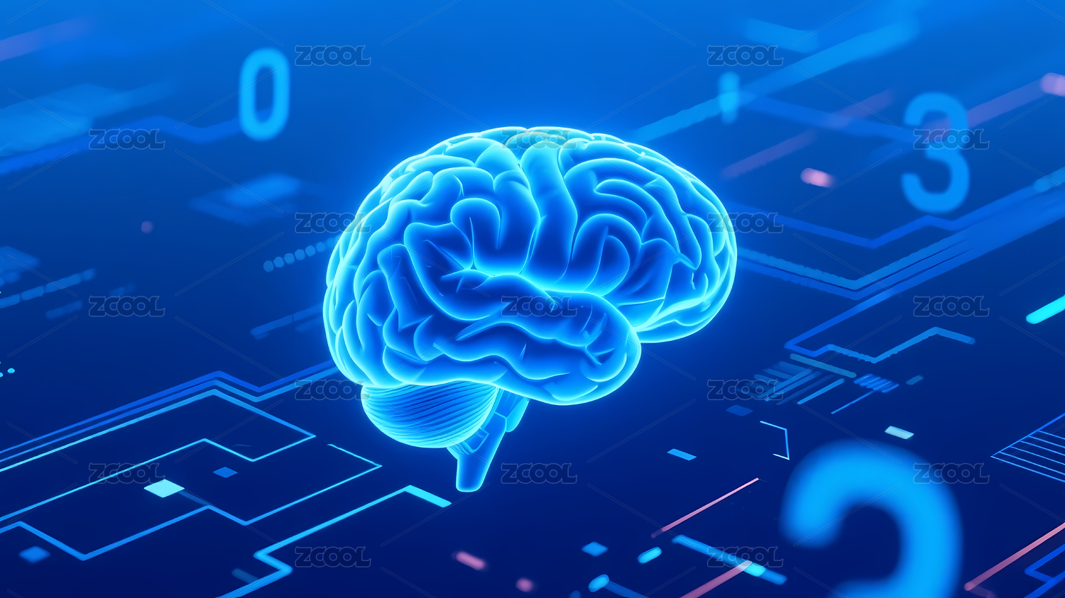 脑机结合概念:大脑周围环绕手机电脑等元素