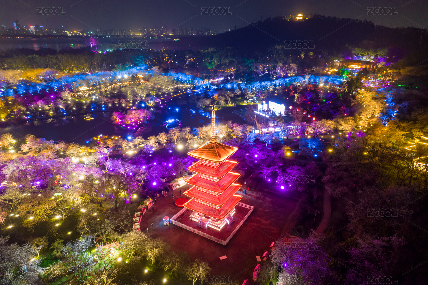 中国湖北省武汉市东湖磨山樱花园五重塔夜景