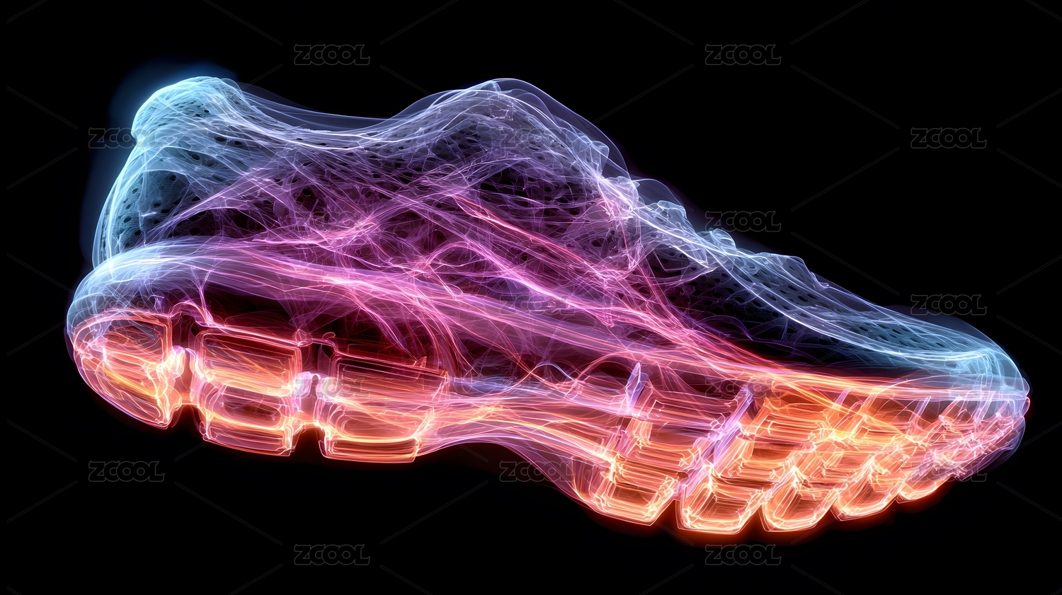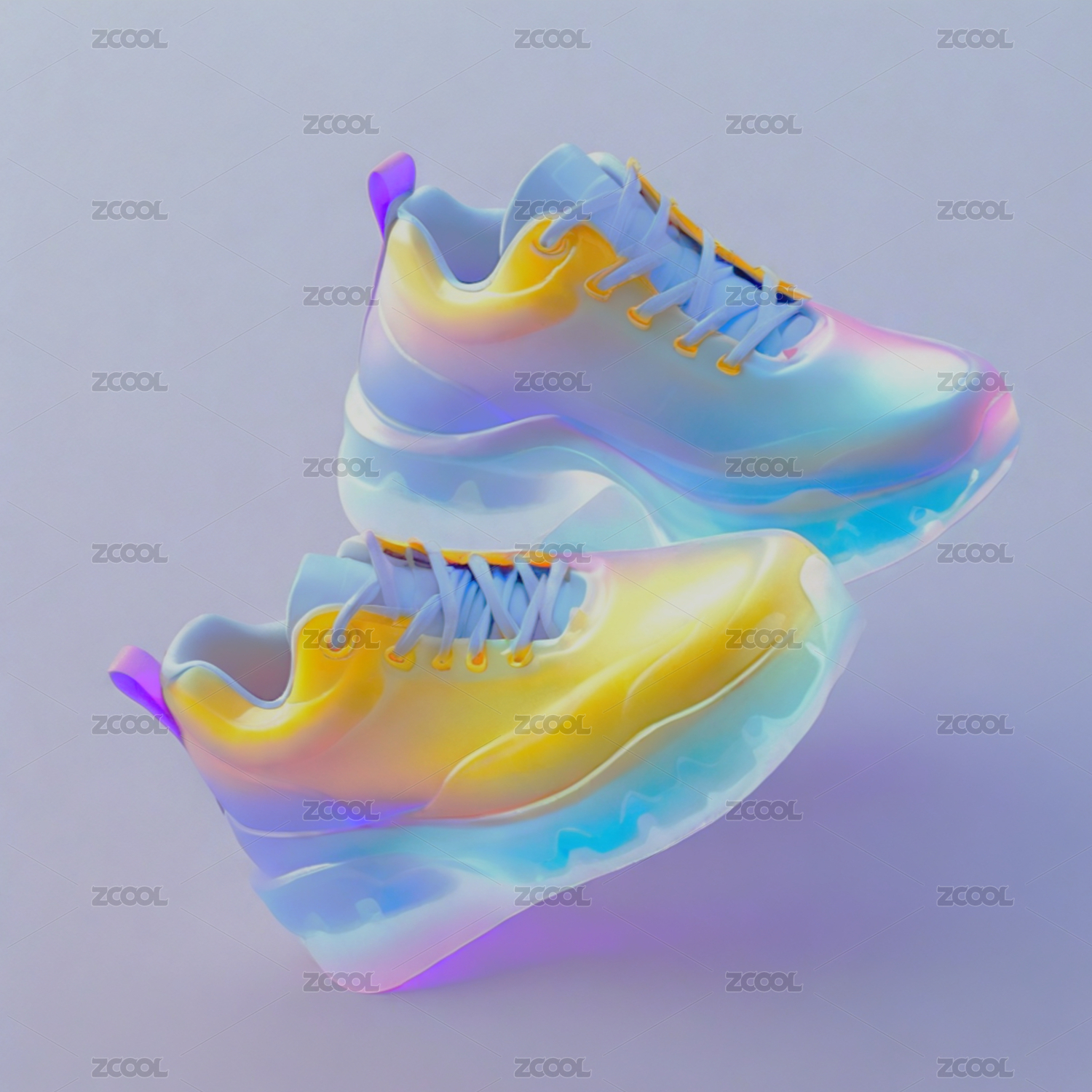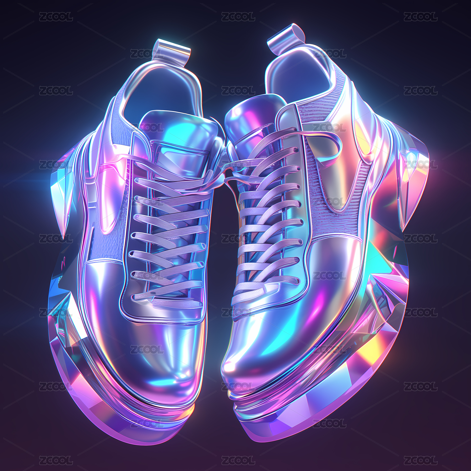 炫彩运动鞋飘带体育用品全息色彩3D插画