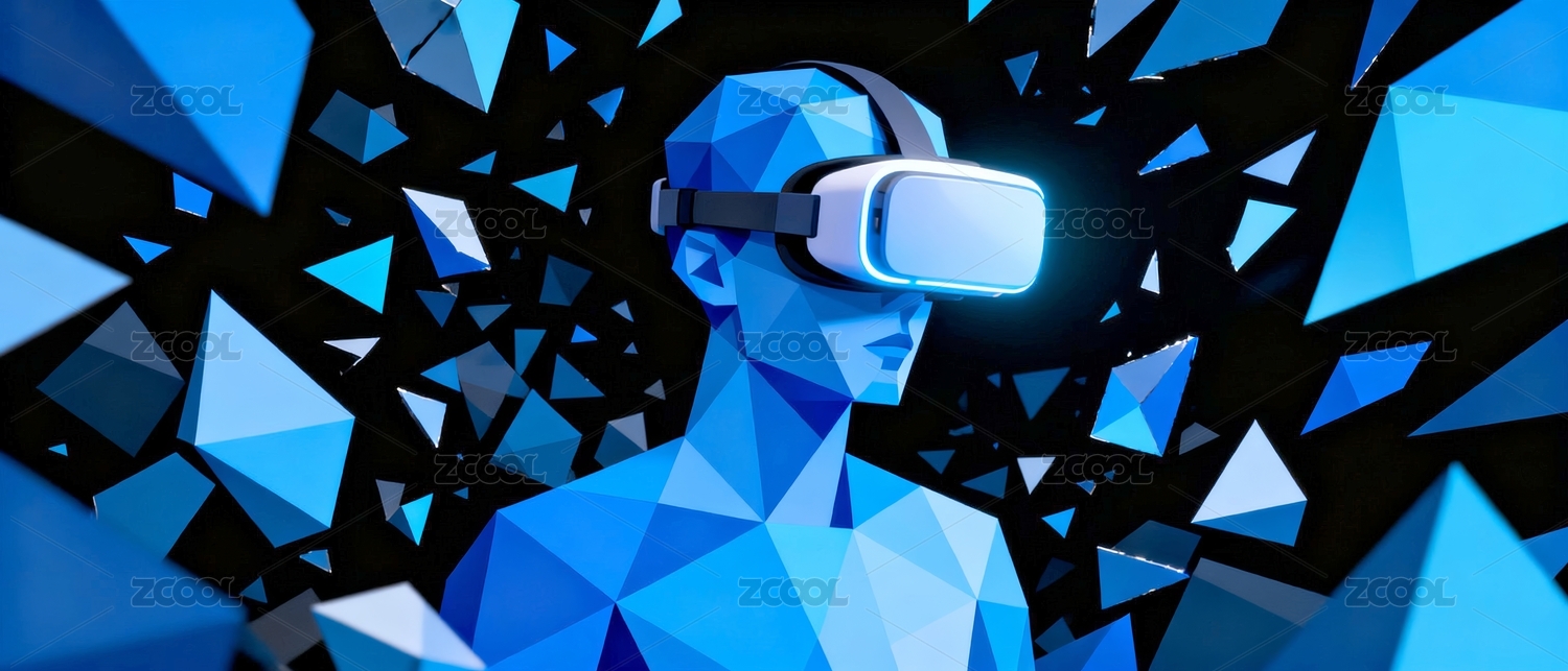 戴着VR眼镜男性炫彩几何形状潮流插画